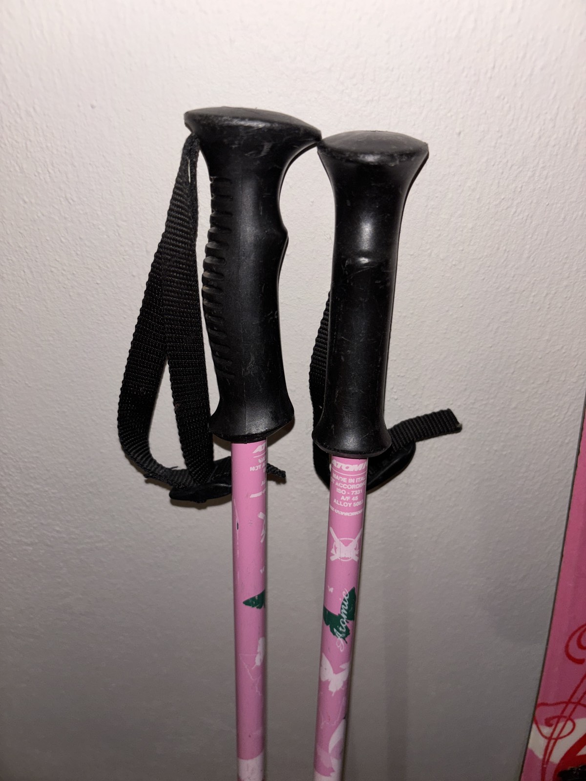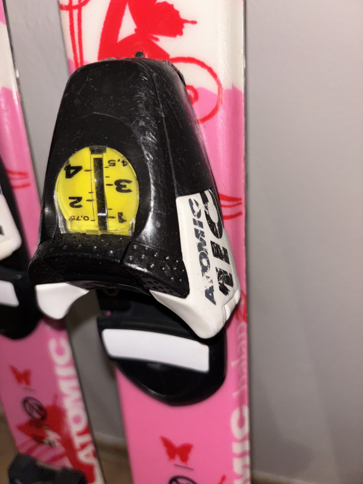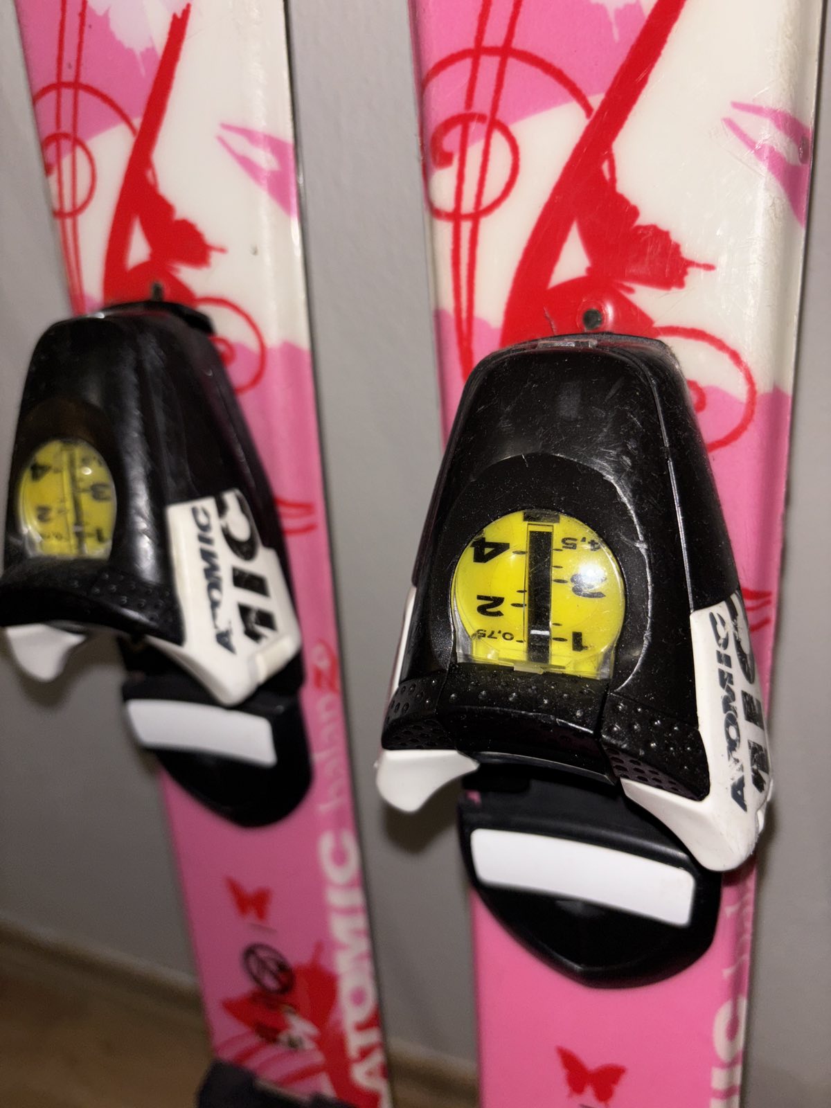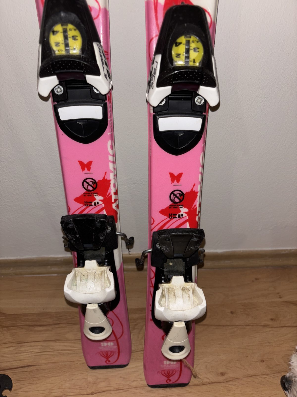 Užívane, veľmi dobrý stav, lyže dĺžka 90 cm s viazaním a paličkami, vsetko Atomic