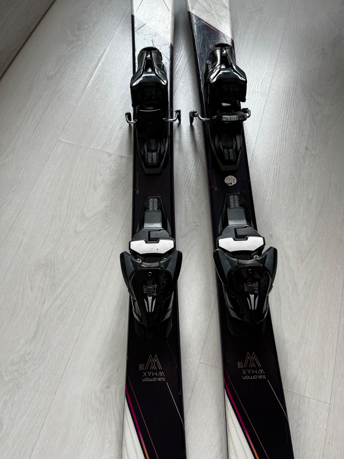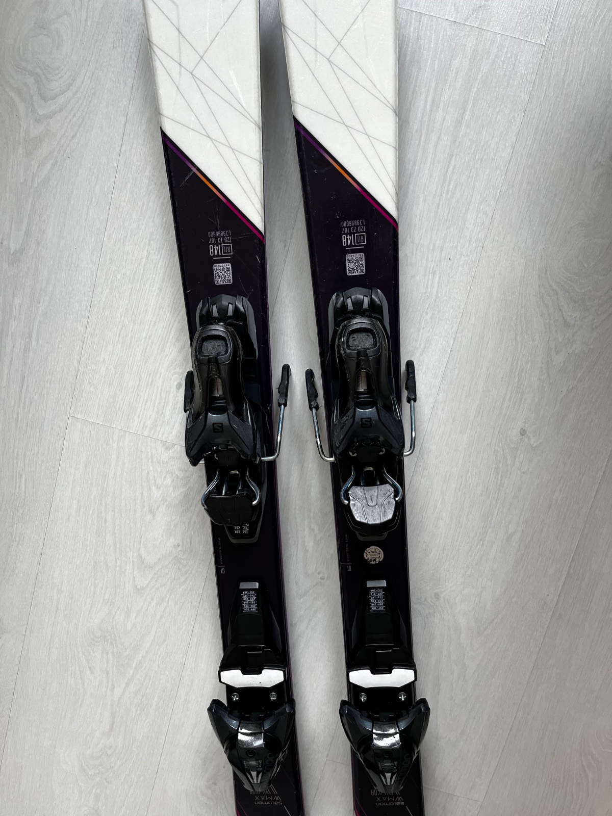 Málo používané, výborný stav, babské lyže SALOMON candy s viazaním, dĺžka 100 cm