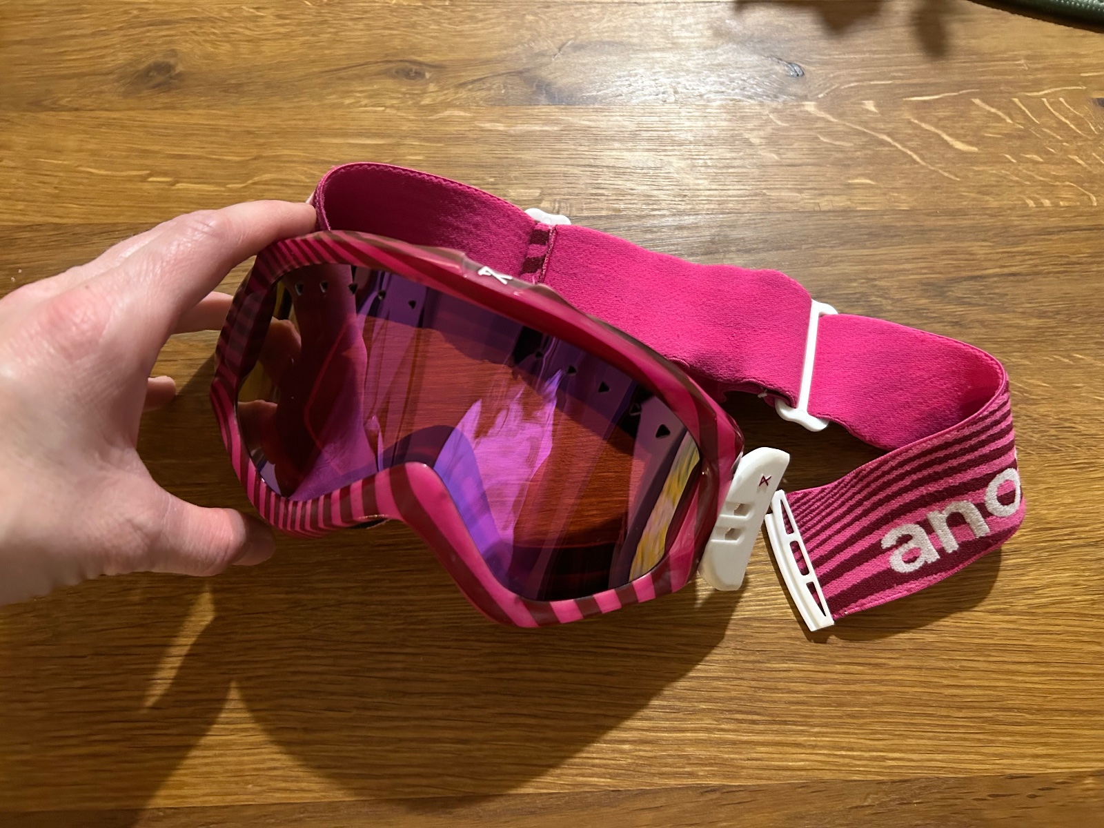 Damske/ dievcenske lyziarske okuliare zn. Anon, pekny stav vid foto jedna cmuha na boku.
