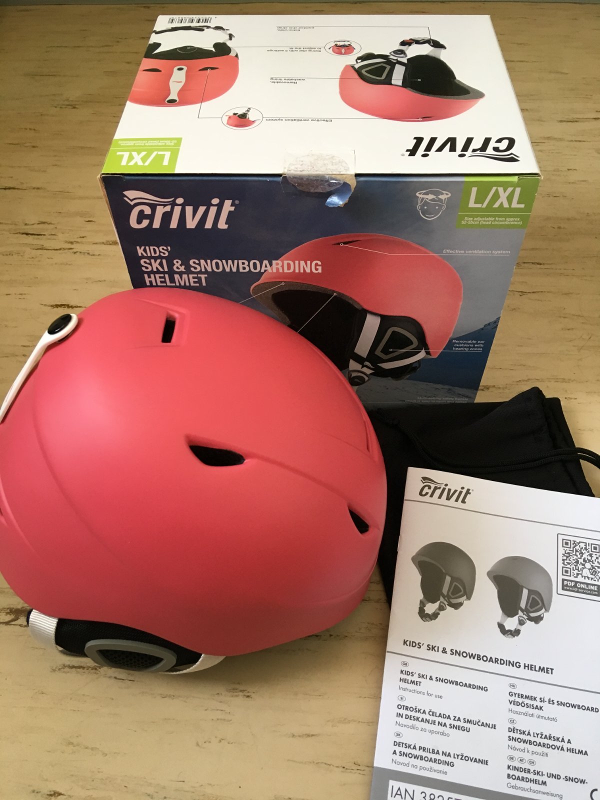 Ako nová. Raz použitá detská helma na lyžovanie a snowboard značky Crivit z Lidla vo veľkosti L-XL pre obvod hlavy 52 - 55 cm. V originálnej krabici, s návodom a ochranným vrecúškom.