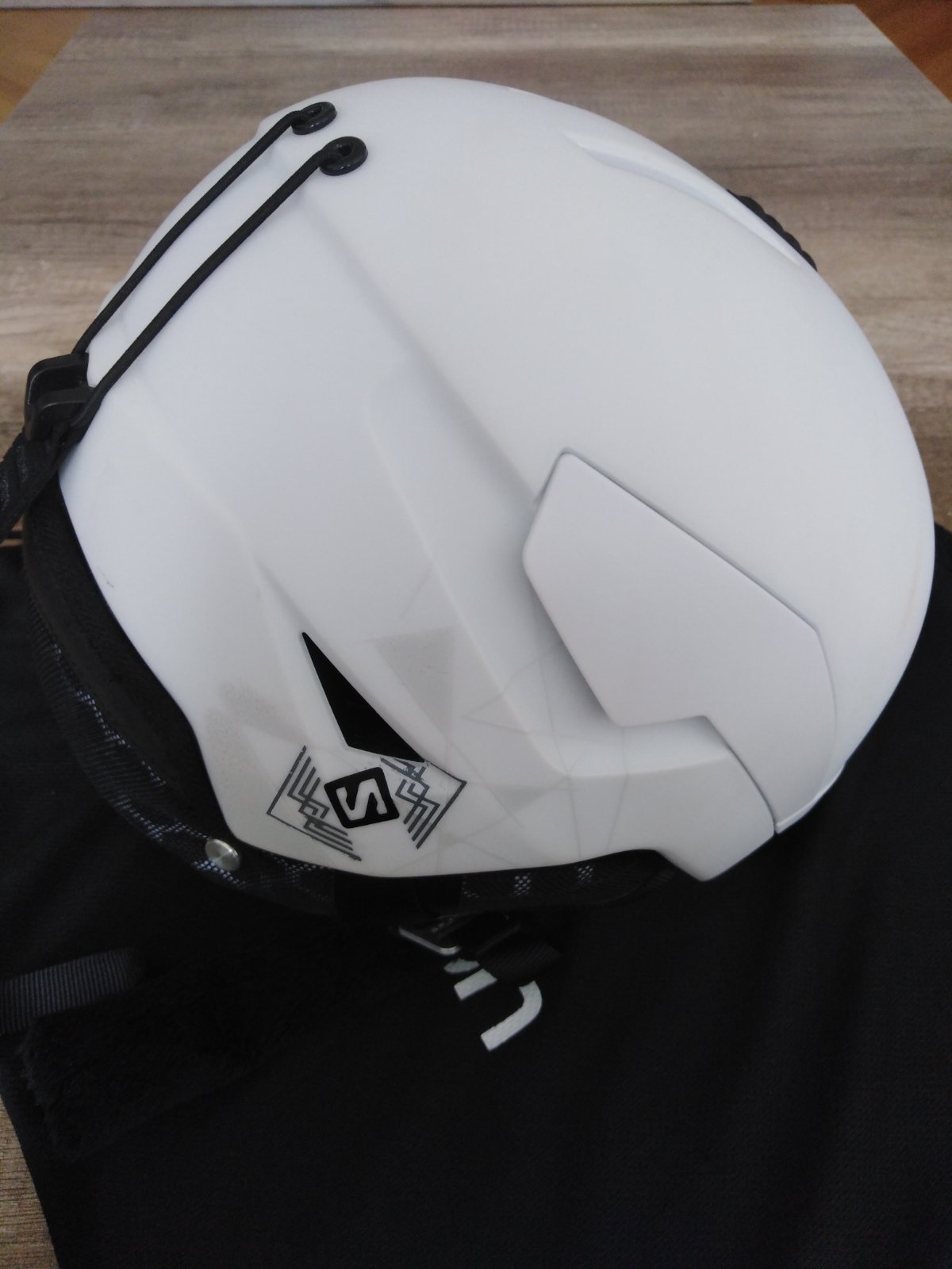 Lyžiarska prilba Salomon Quest White Matt velkosť S 53-56 cm. Je veľmi kvalitne zvnútra vypolstrovaná, mäkučká, pohodlná. Dcére už malá, mne tiež, inak by som si ju nechala. Prikladám aj okuliare Blizzard a vak na prilbu. PC 159 eur.