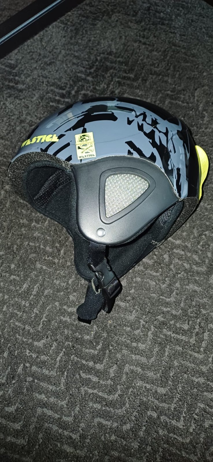 Damska helma v dobrom pouzivanom stave, skrabanec sa najde ale bez funkcnych poskodeni. Na obvod hlavy 55-59cm. Ochrana na usi sa da dat dole, cize vyuzitelna aj na sporty v letnej sezone. PC 60€