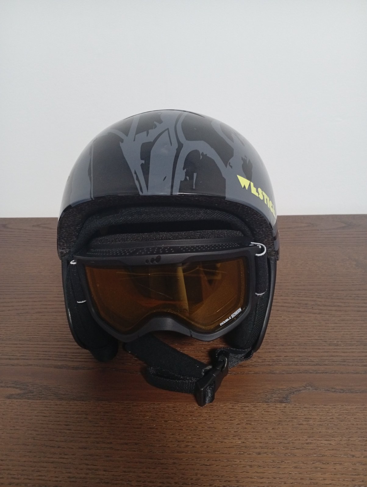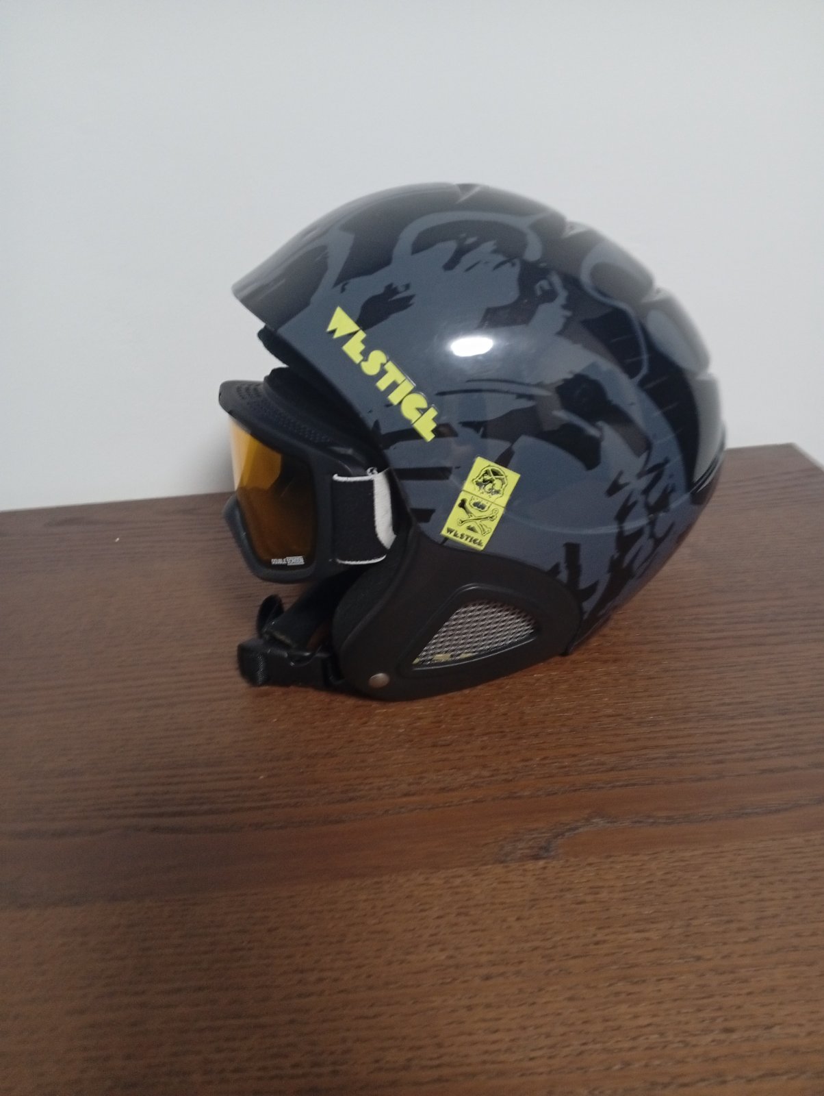 Dobrý stav. Veľkosť S-M, obvod hlavy 55-58 cm. Odvetrávacie otvory, zapínanie s ochranou na bradu, obvod nastaviteľný. Pri zapínanie okuliarov odlupnutá vrchná vrstva, ale nič strašné.