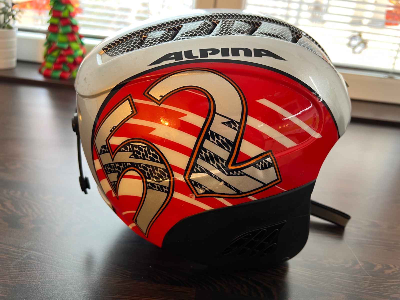 Dobrý stav. Veľkosť S-M, obvod hlavy 55-58 cm. Odvetrávacie otvory, zapínanie s ochranou na bradu, obvod nastaviteľný. Pri zapínanie okuliarov odlupnutá vrchná vrstva, ale nič strašné.