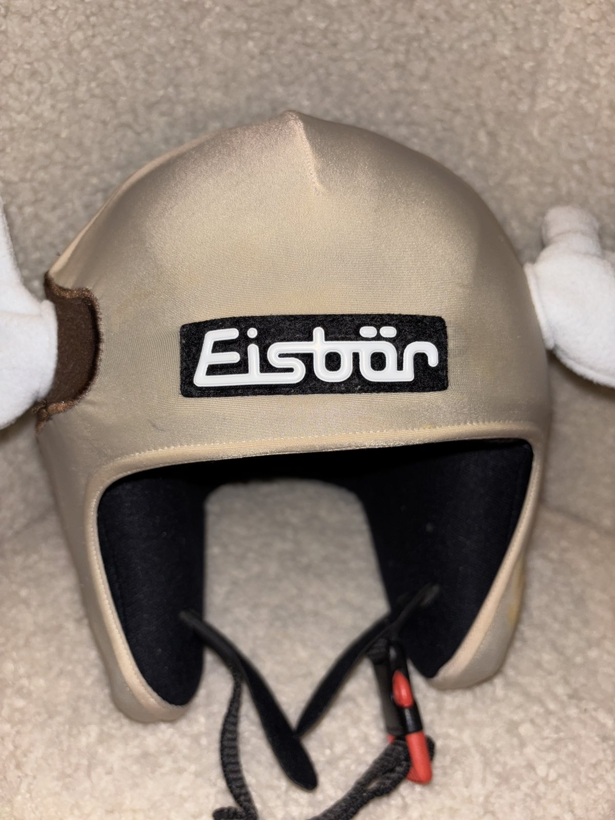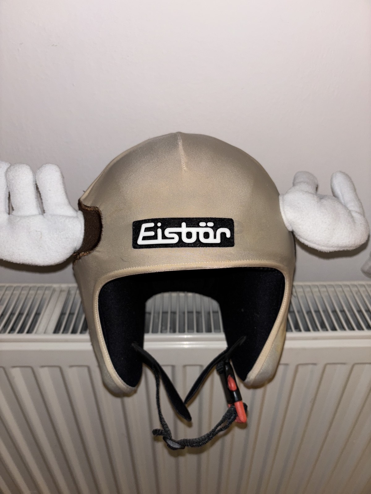 Unisex prilba v šedej farbe, uzivana bez poškodenia, veľkosť 50,k tomu čiapka na prilbu Eisbar, má mini dierku na boku a presvita stopa po lepiacom pásiku vo vnútri čiapky, cena spolu 15€