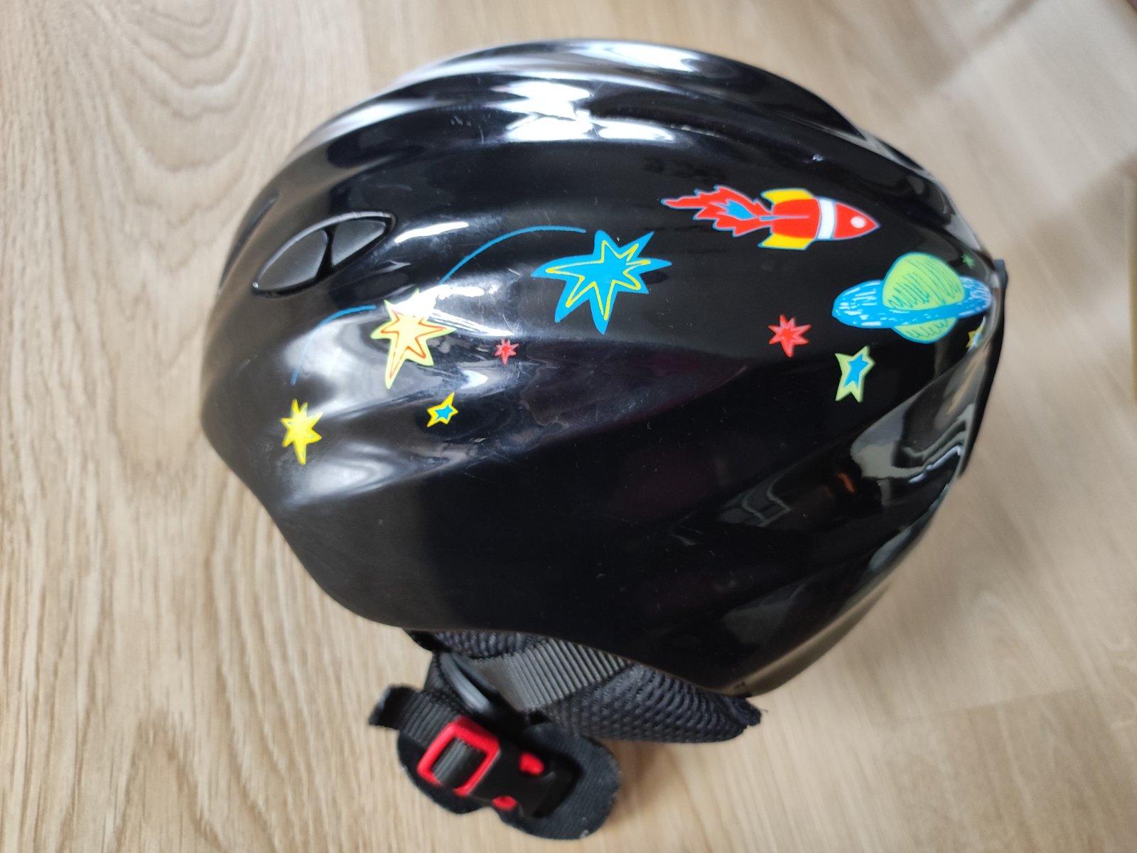 Kvalitná detská prilba na lyže a snowboard. Super stav bez poškodení, pár škrabancov, plne funkčná. Veľkostne nastaviteľné na obvod hlavy 48 až 52 centimetrov.. S motívom vesmír.