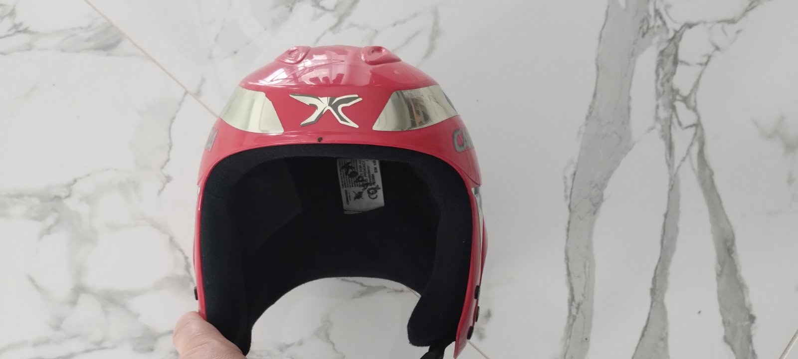 nosená lyžiarska prilba bez poškodení