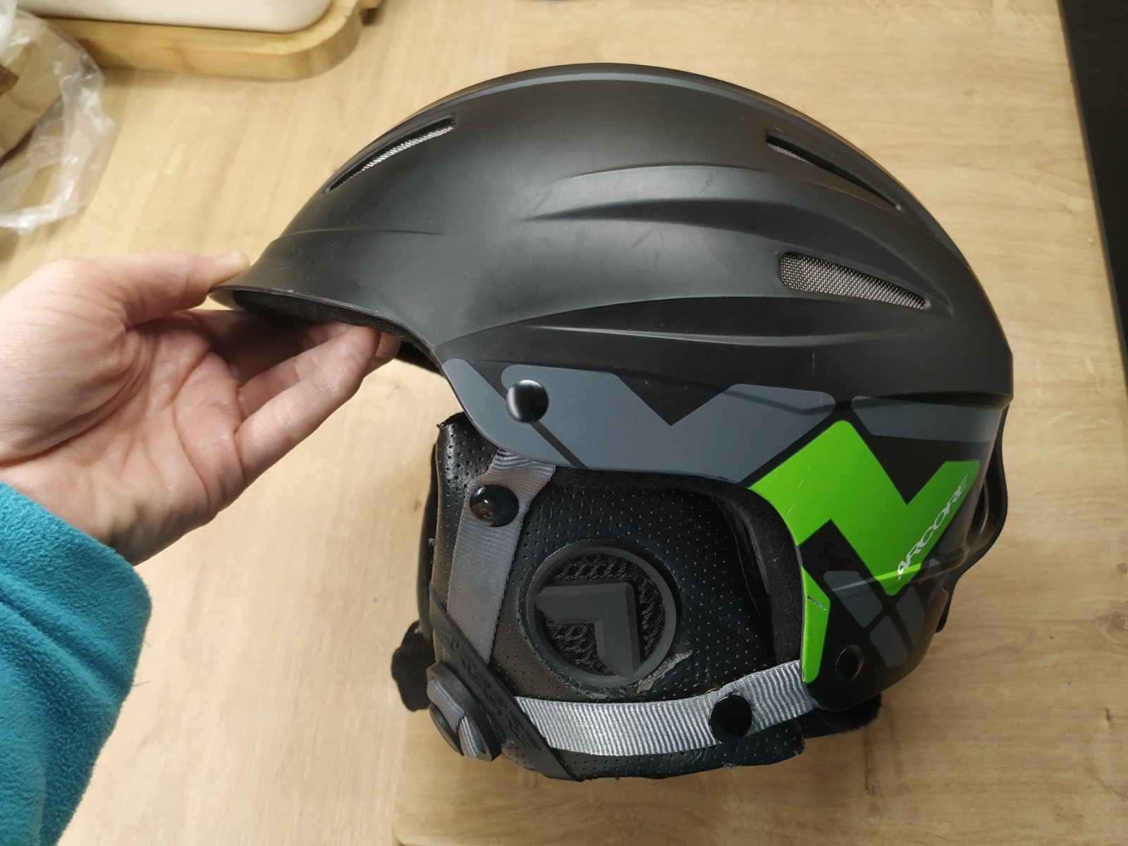 Používaná lyžiarska prilba Arcore zo Sportisimo, veľkosť XS/S na obvod hlavy 51 - 53cm. Plne funkčná, jedine popraskana koženka na chrániacich uši - estetická vec.