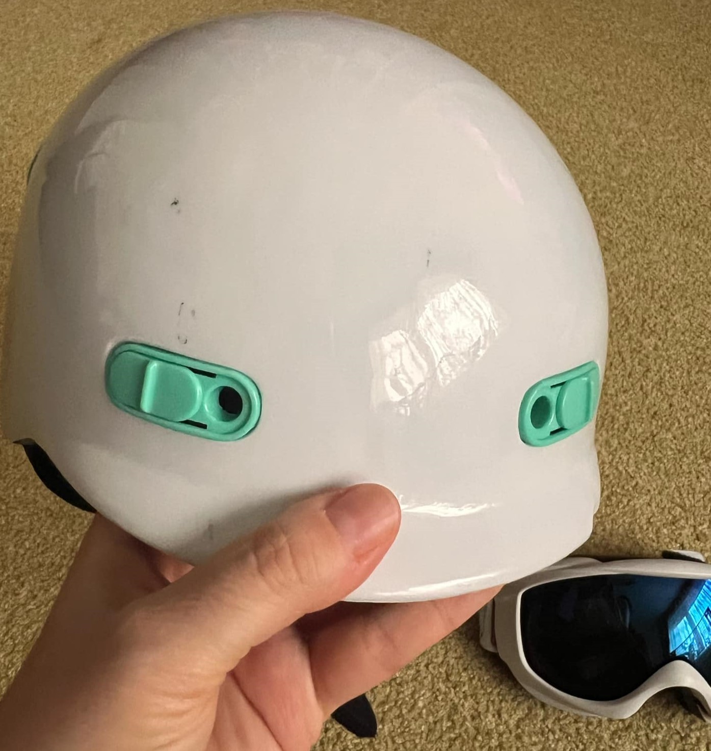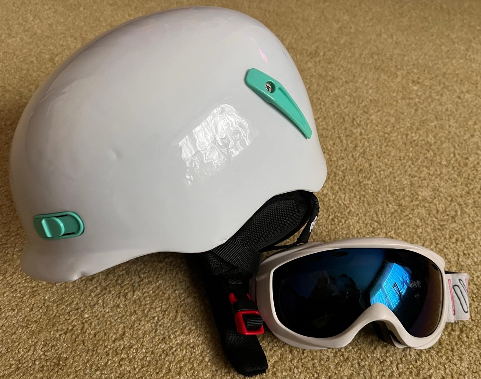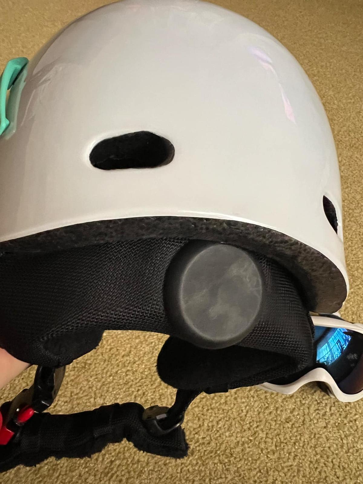 Prilba po jednom dieťati v zachovalom stave spolu s okuliarmi. Cena a predaj spolu.