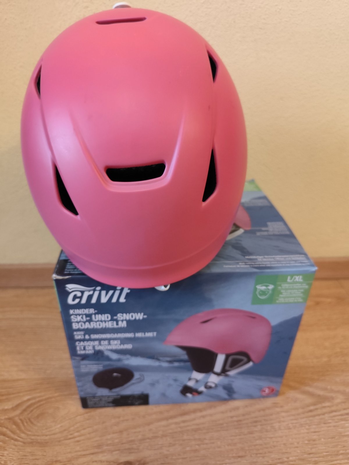 Ako nová. Raz použitá detská helma na lyžovanie a snowboard značky Crivit z Lidla vo veľkosti L-XL pre obvod hlavy 52 - 55 cm. V originálnej krabici, s návodom a ochranným vrecúškom.