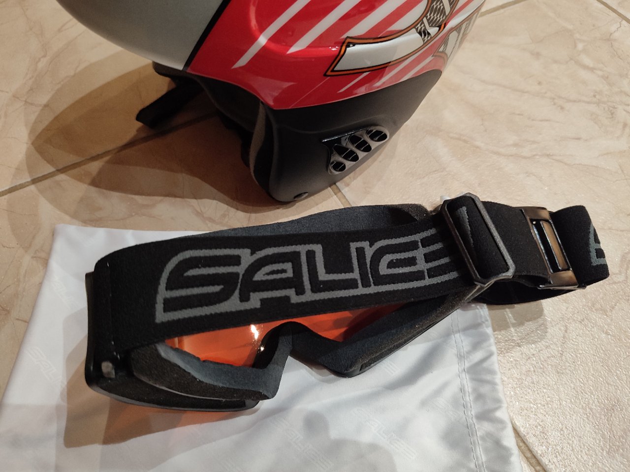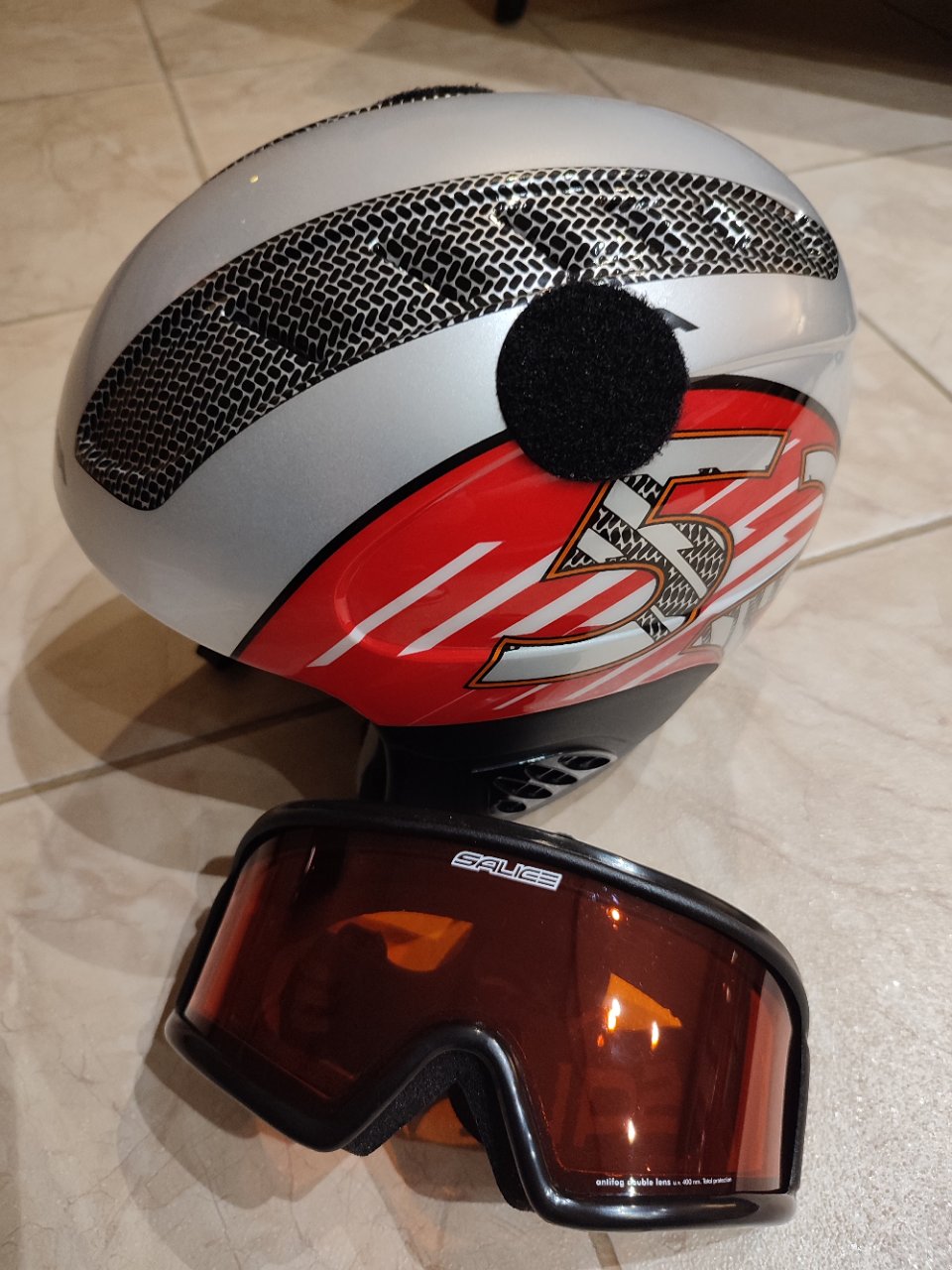 Predám detskú lyžiarsku prilbu ALPINA, veľkosť 51-55 cm. Predám ju spolu s lyžiarskymi okuliarmi zn. Salice, ktoré do prilby výborne sedia a sú vhodné aj pre deti s dioptrickými okuliarmi. Okuliare majú úpravu "antifog double lens" s UV ochranou (dvojité šošovky s úpravou proti roseniu).