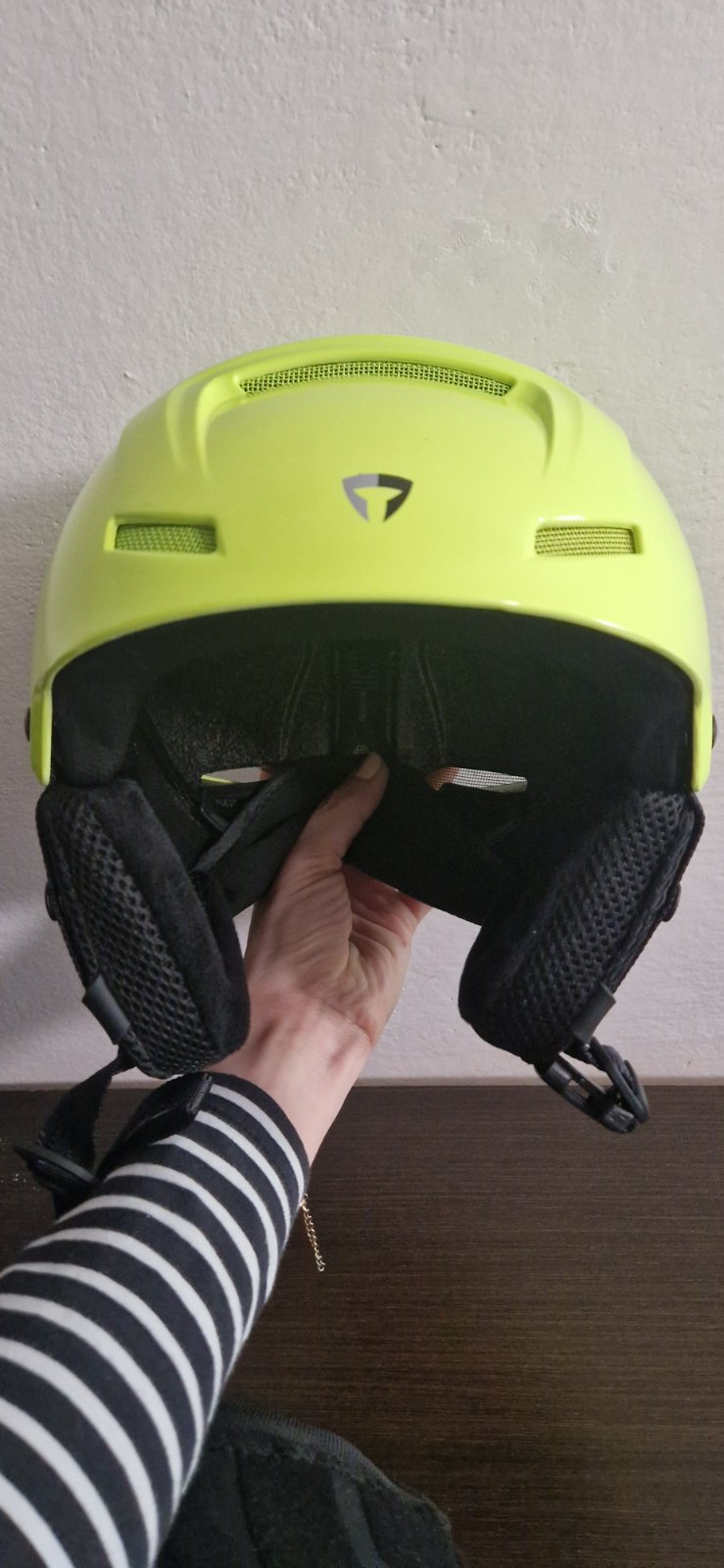 nosená lyžiarska prilba bez poškodení