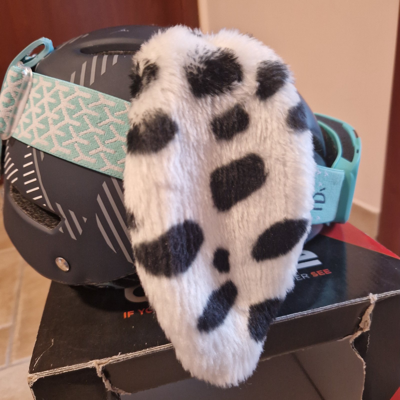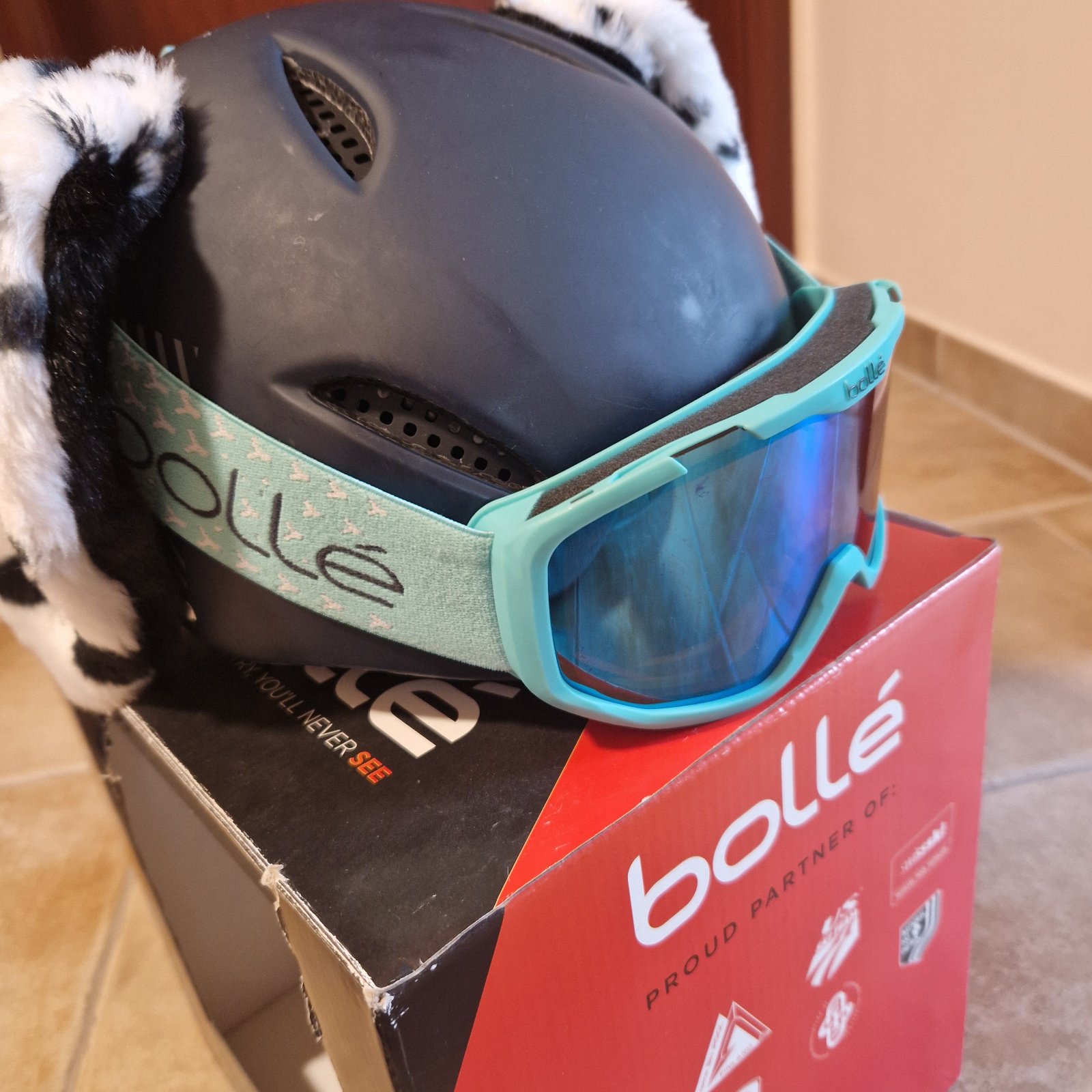 Predám lyžiarsku prilbu po jednom dieťati s okuliarmi tej istej značky, plus nalepovacie uši