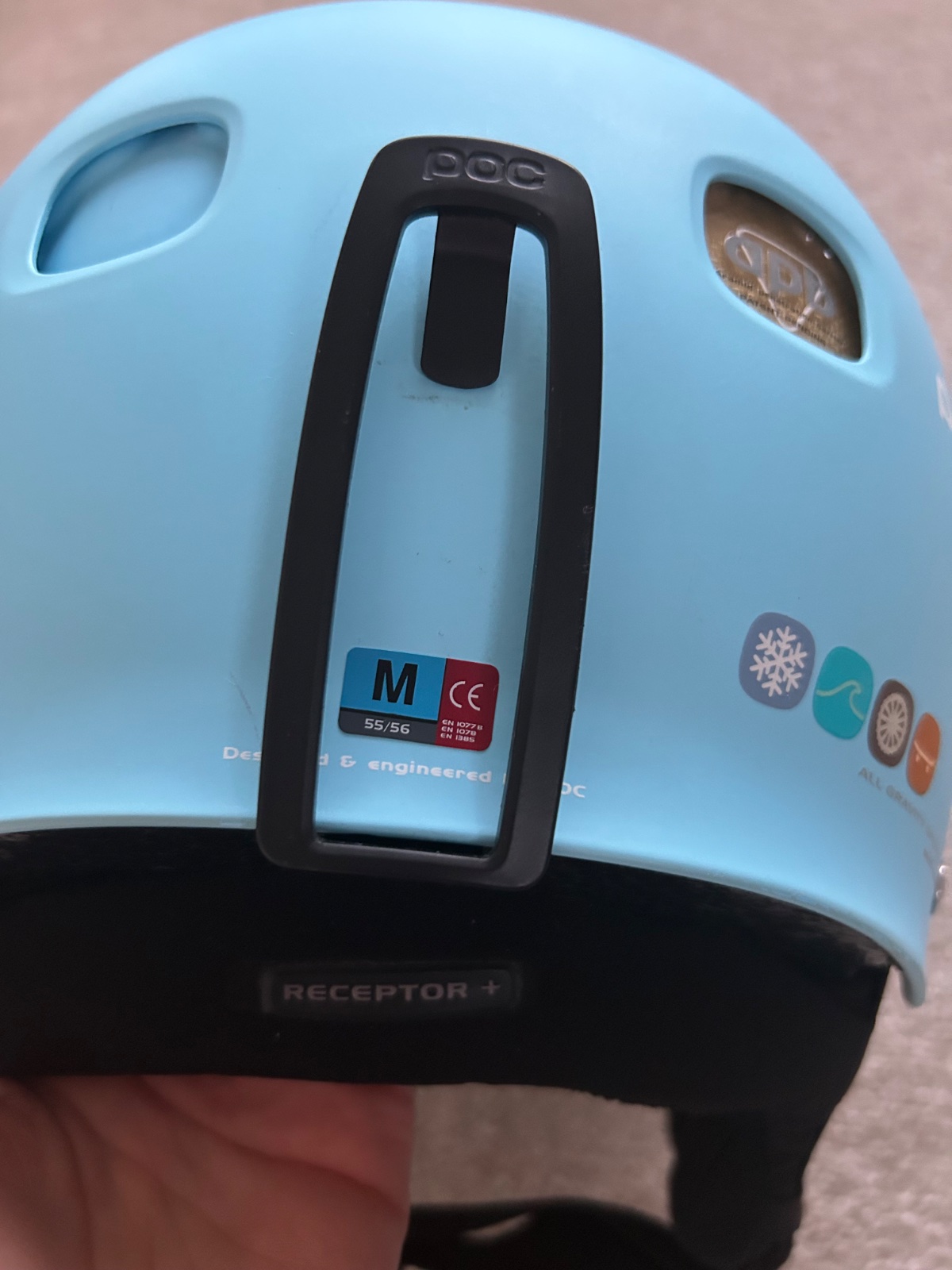 Prilba POC Receptor málo nosená vo veľmi dobrom stave len na vrchu hlavy jeden fľak, pozri detail foto, veľkosť M 55-56 cm.