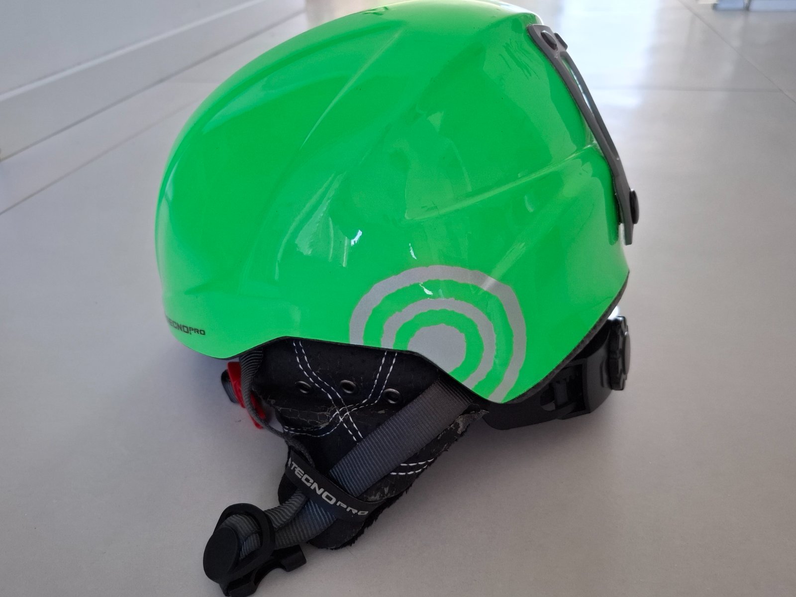 Damska helma v dobrom pouzivanom stave, skrabanec sa najde ale bez funkcnych poskodeni. Na obvod hlavy 55-59cm. Ochrana na usi sa da dat dole, cize vyuzitelna aj na sporty v letnej sezone. PC 60€