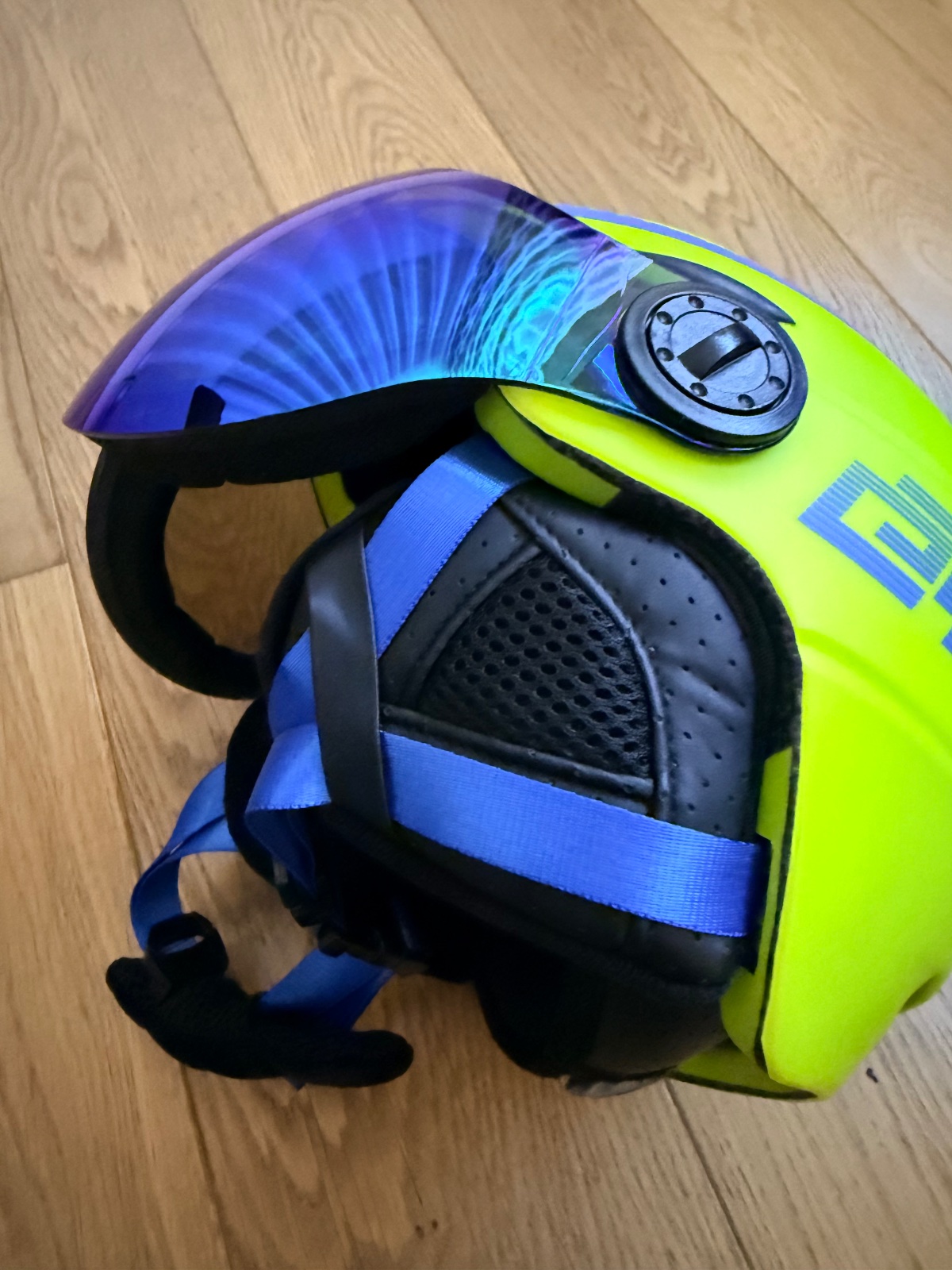 Detská lyžiarska prilba Etape RIDER PRO vybavená odnímateľným štítom s filtrom kategórie 2 so zrkadlovým efektom a úpravou proti zahmlievaniu, odvetrávanie prilby, ľahučká.