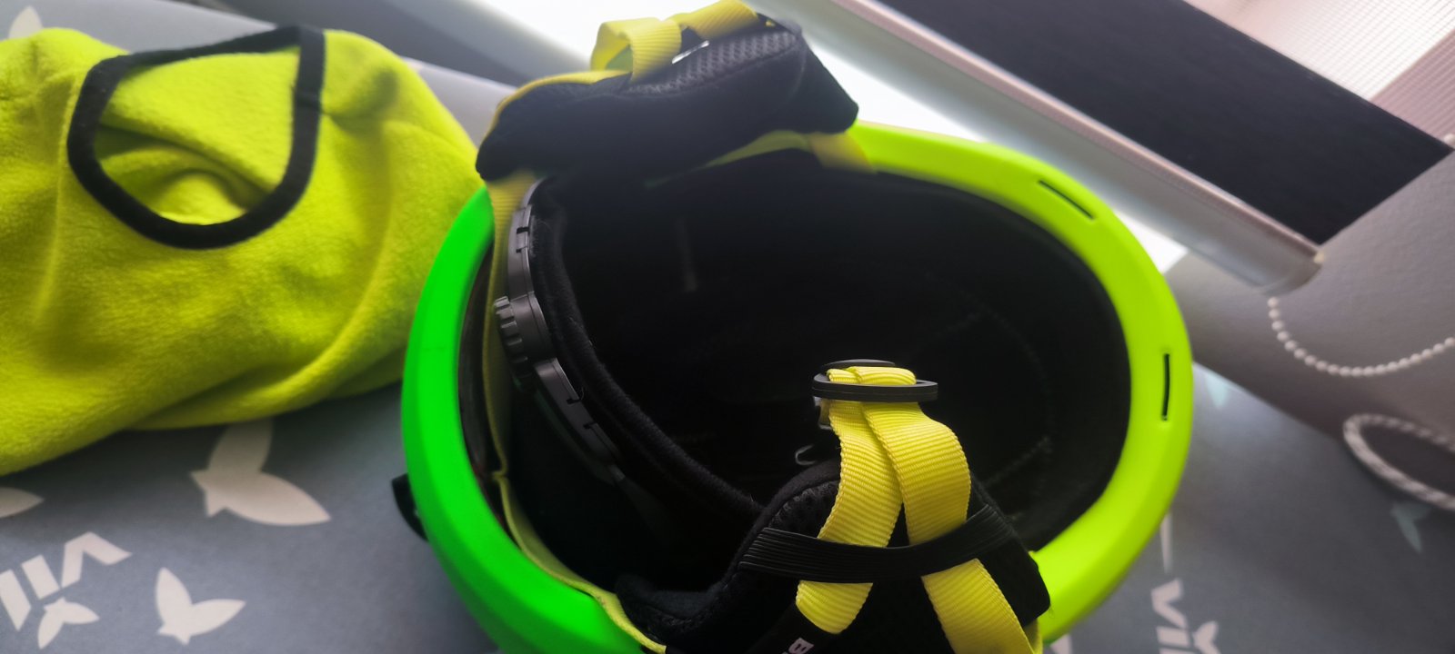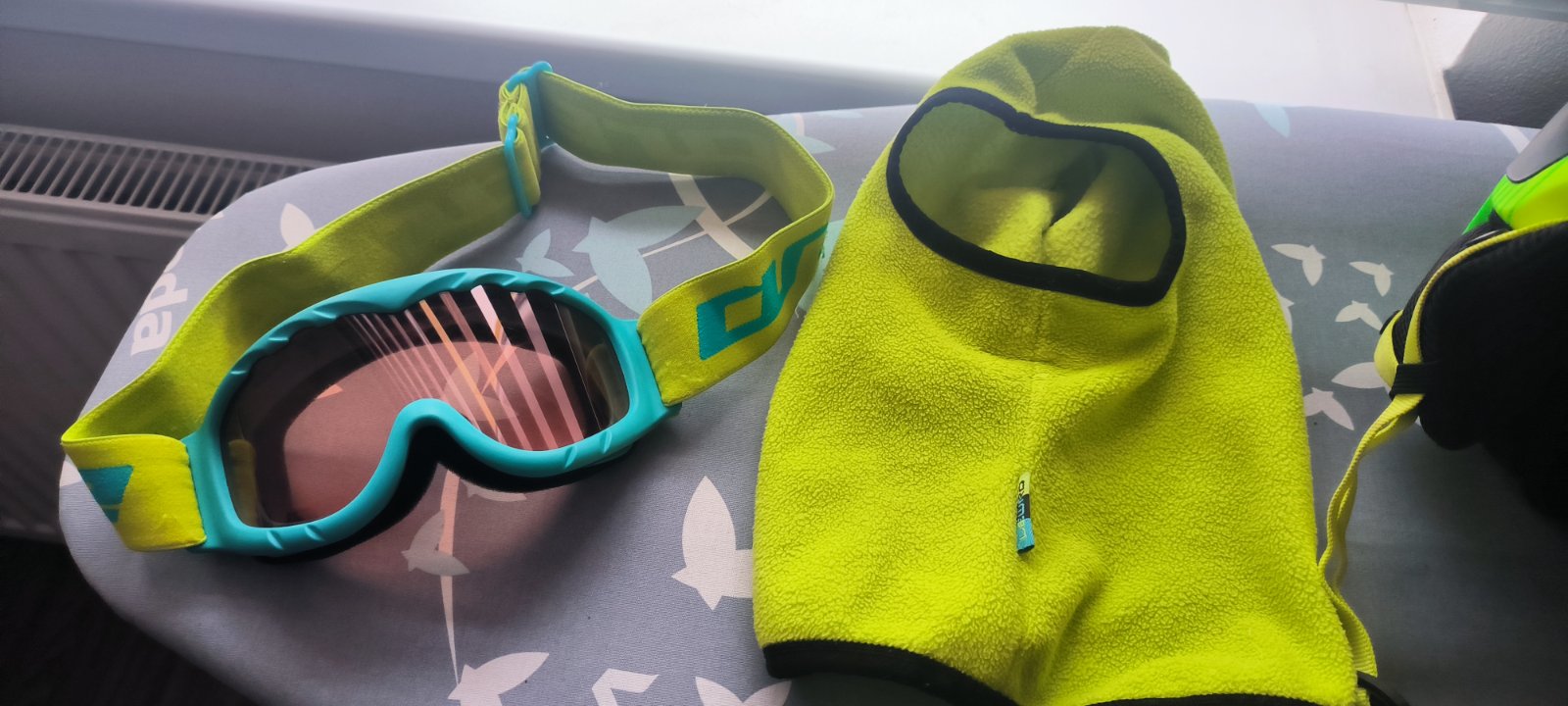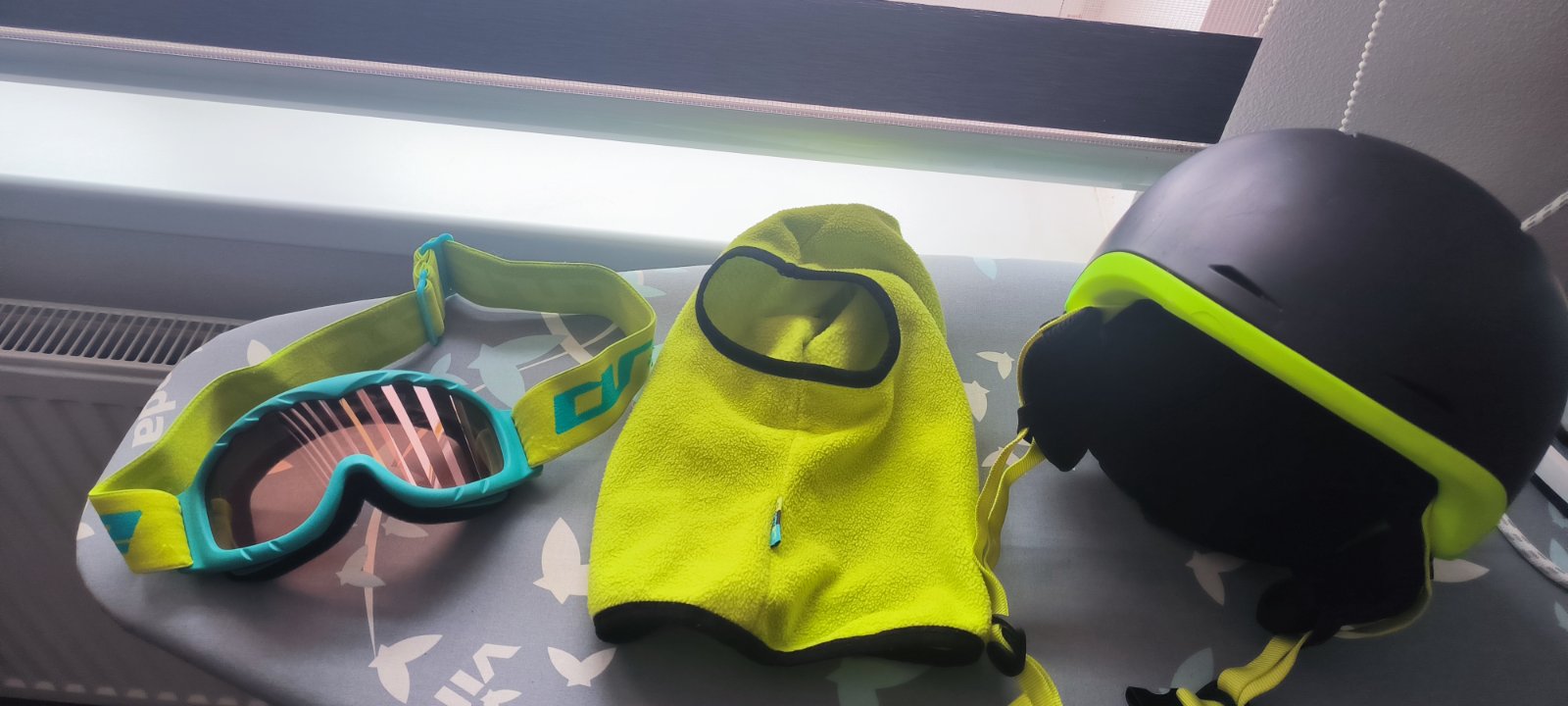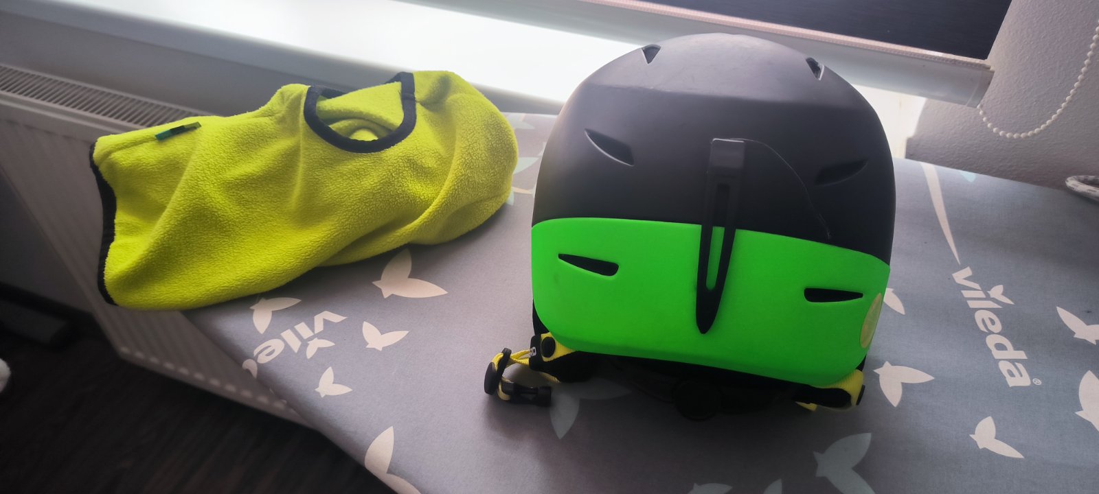 Prilba v jednej časti prasklina na plaste- viď foto. Pri nosení nevadí. Zohľadnené už v cene. K prilbe okuliare a kukla grátis.