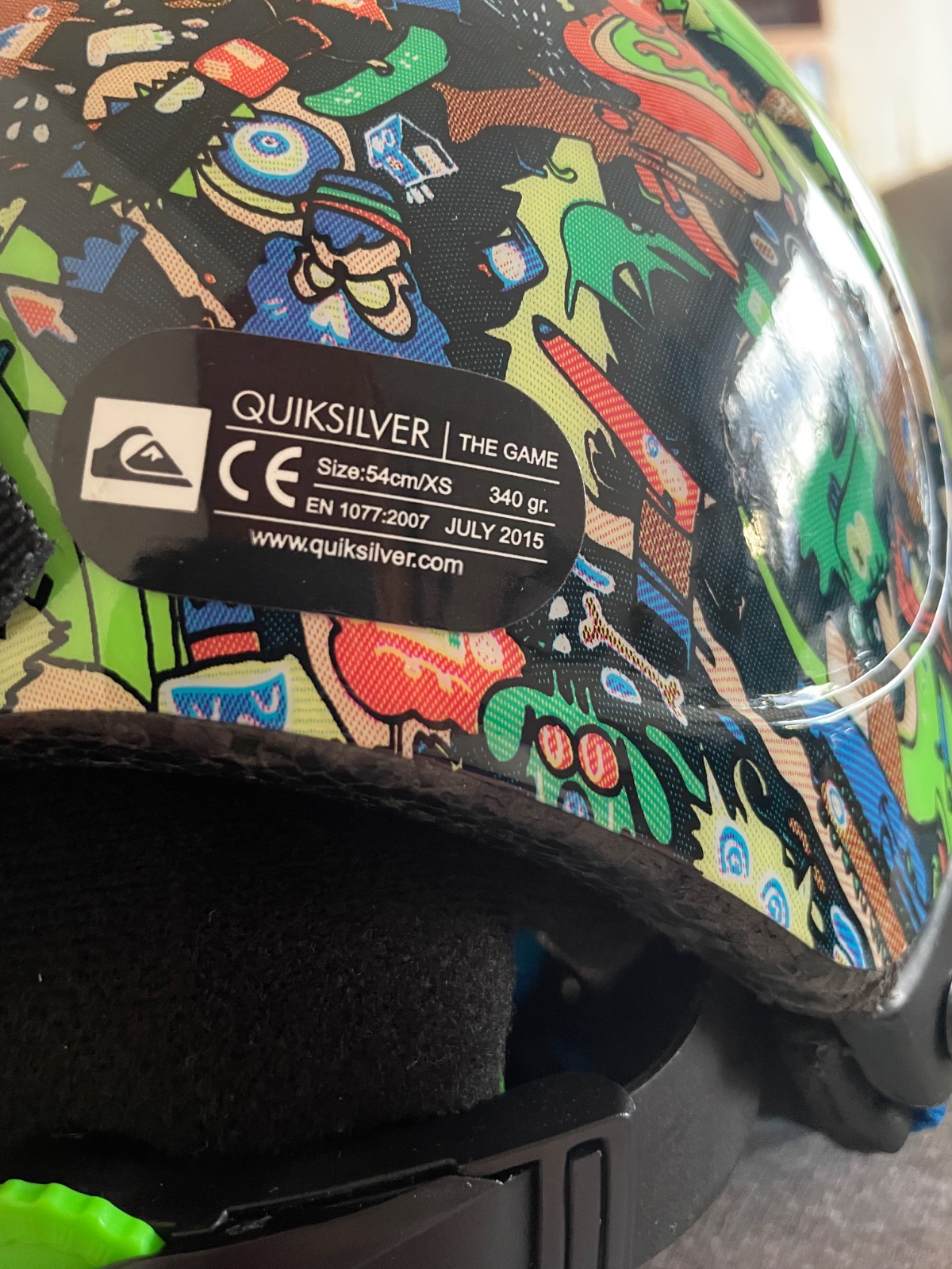 Predám detskú prilbu spolu s okuliarmi s rovnykým motívom a ornamentom. Značka Qiuksilver. Veľkosť 54cm/XS. Pre 7-10 ročné deti. Nosená párkrát.