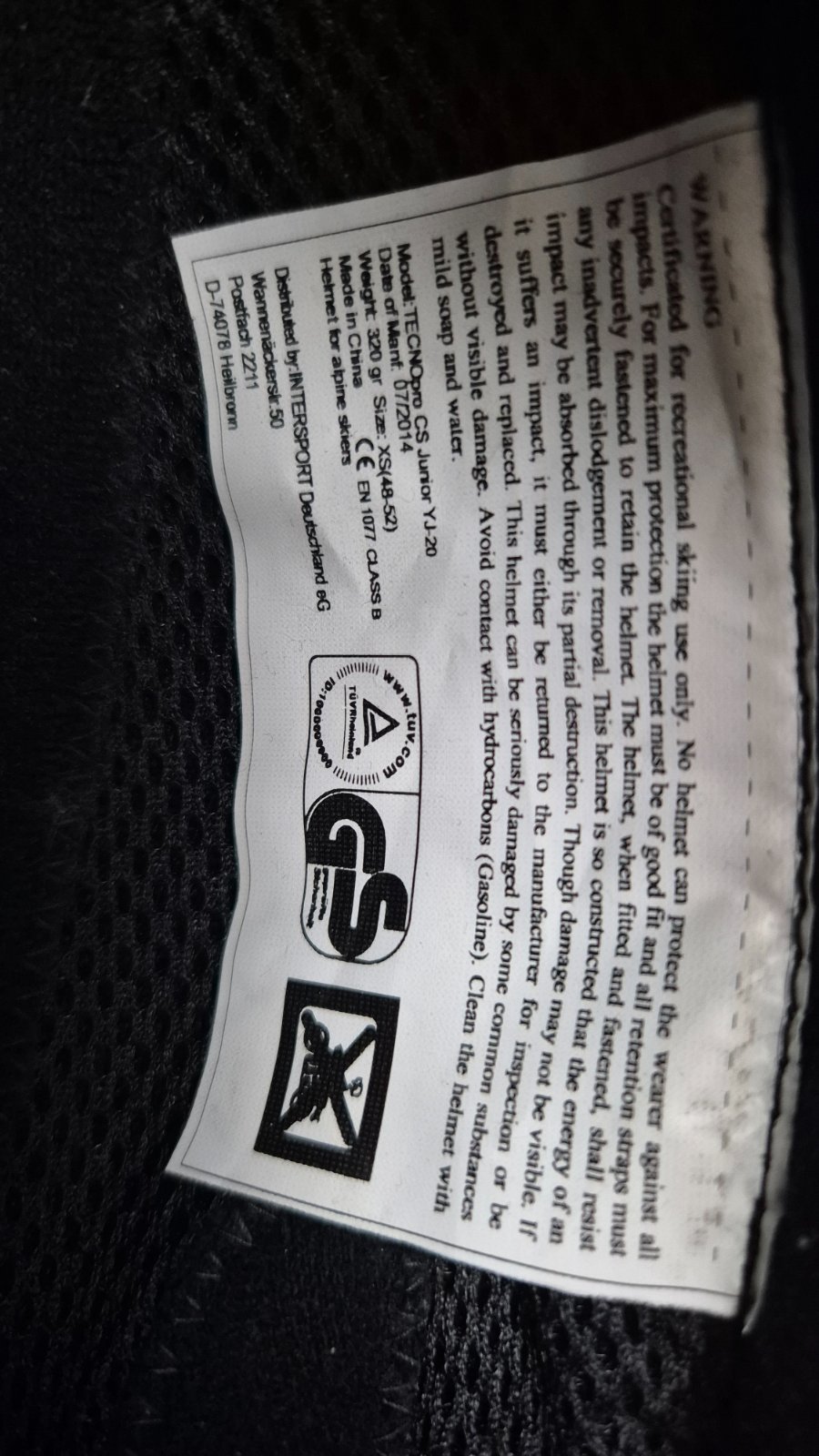 nosená lyžiarska prilba bez poškodení