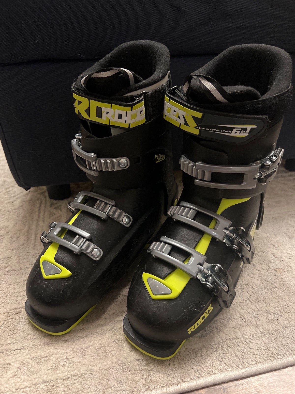 Použité lyžiarky na troch lyžovačkach, nastaviteľná velkost od 22,5-25,5