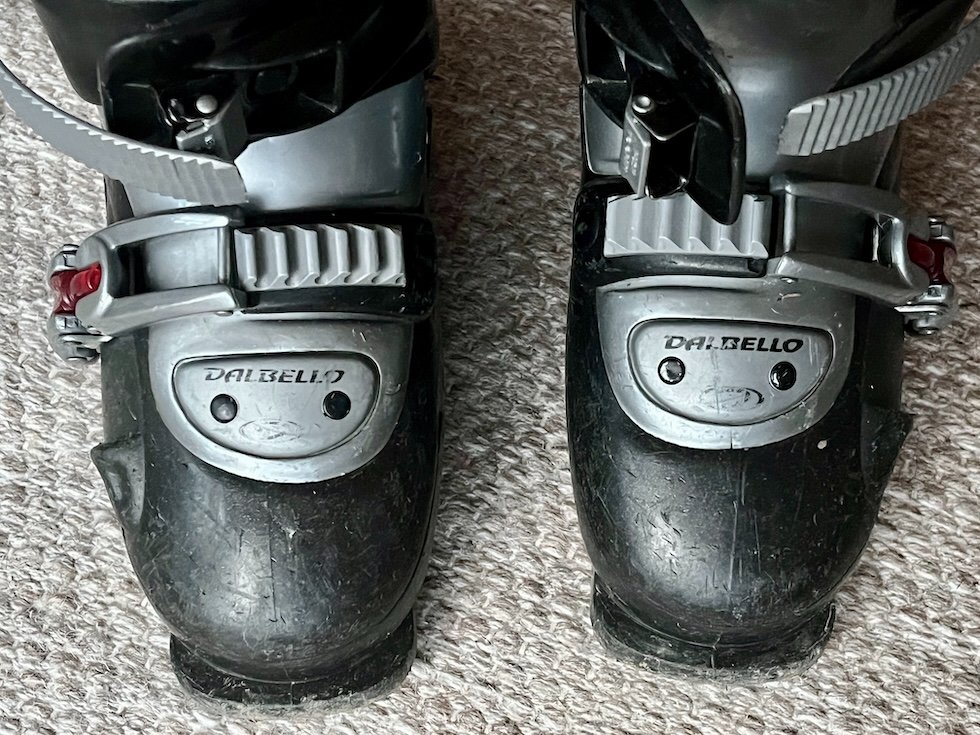 Zachovale detske lyziarky Dalbelo vnutornej dlzky (mondopoint) 200mm, skelet ma 241mm. Su uz dost poskriabane, kedze nosene po 3 detoch, inak dobry pouzitelny stav. Cena symbolicka, nakolko viac nosene.