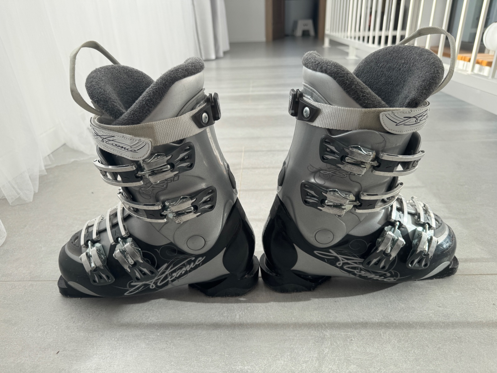 Predám lyziarky atomic obuté dcérkou asi 2 krát, už sú malé. Top stav. Uvedená veľkosť 24 - 24,5 cm. Cena aj s poštou ako balík na poštu 100 EUR.
