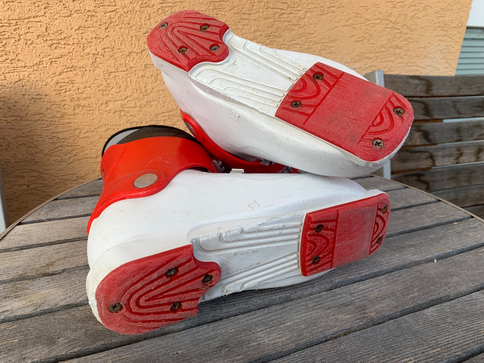 Lyžiarky sú v stave ako na foto, sú vhodné na donosenie. Dcéra v nich lyžovala v pohode no je potrebné prísť osobne pozrieť. VD 22,5cm