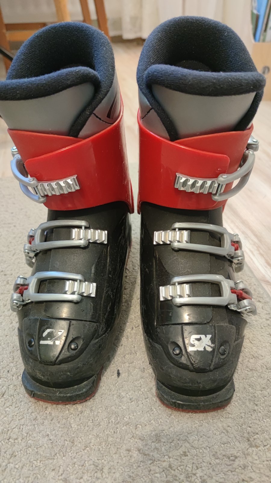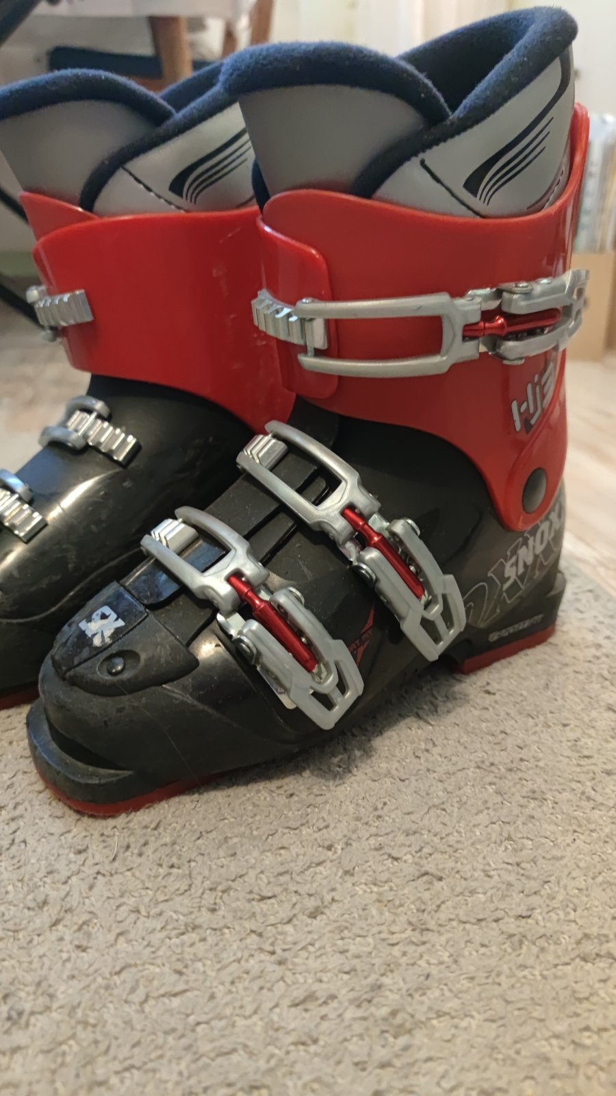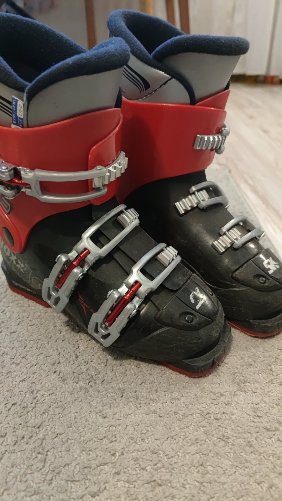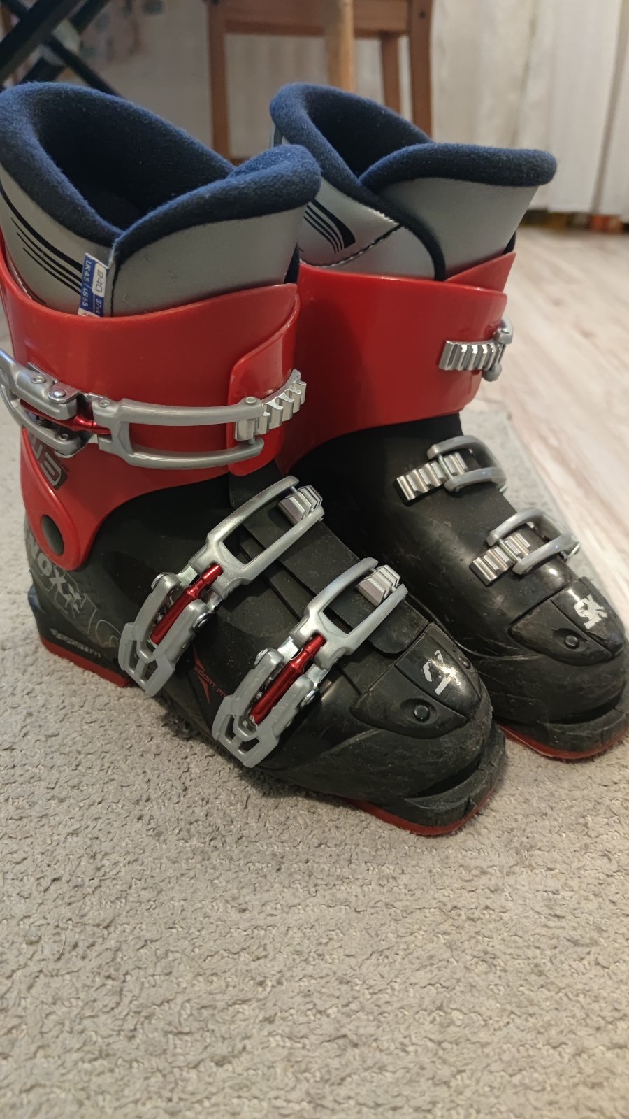 Lyžiarky v dobrom stave, kúpili sme použité, posúvame ďalej. Vnútorná dĺžka 23,5 cm (24 cm úplne nadoraz), vonkajšia dĺžka 28 cm.