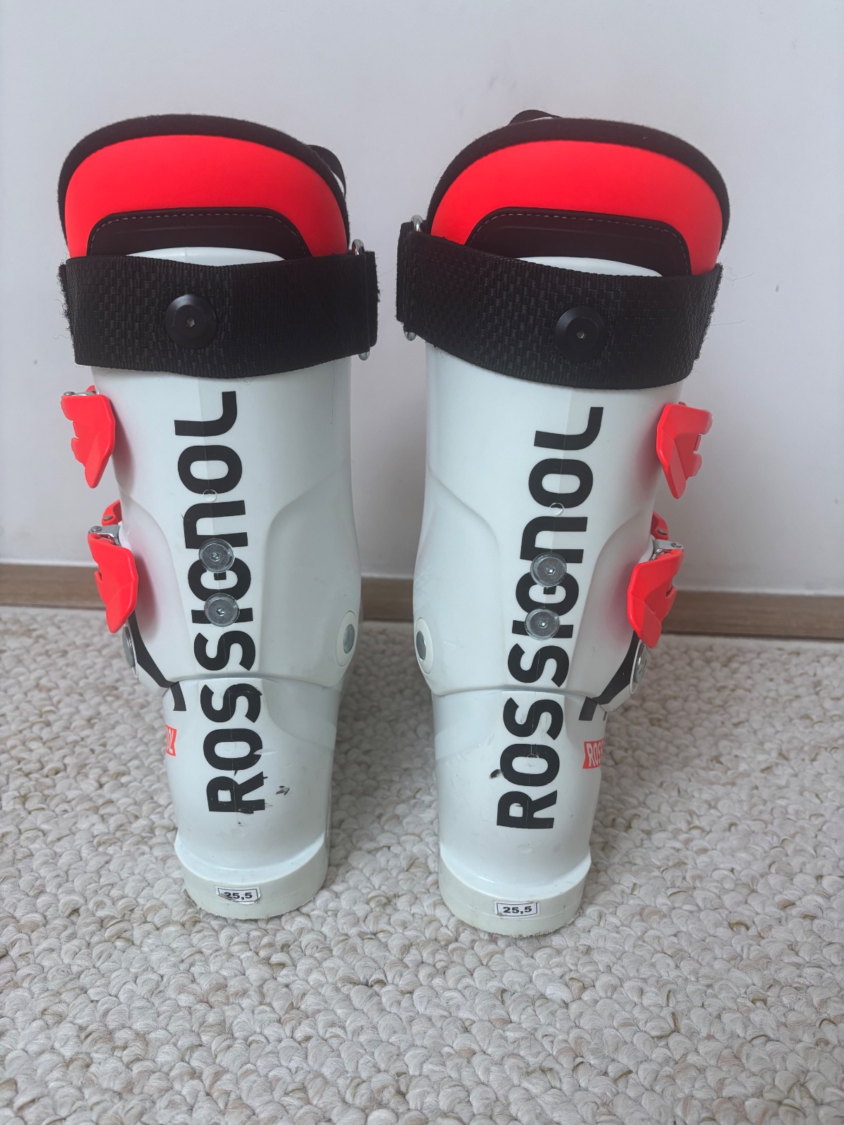 Lyziarky Rossignol World Cup 90SC. V super stave s bežnými známkami používania. Veľkosť 296mm-255, čiže na nohu cca 39-40, ale teda podľa mňa tak 37-38. Ja som ich s mojou veľkosťou nohy 39 obula veľmi ťažko. Sú kvalitne ale upozorňujem, že ťažšie ako bežne lyziarky.