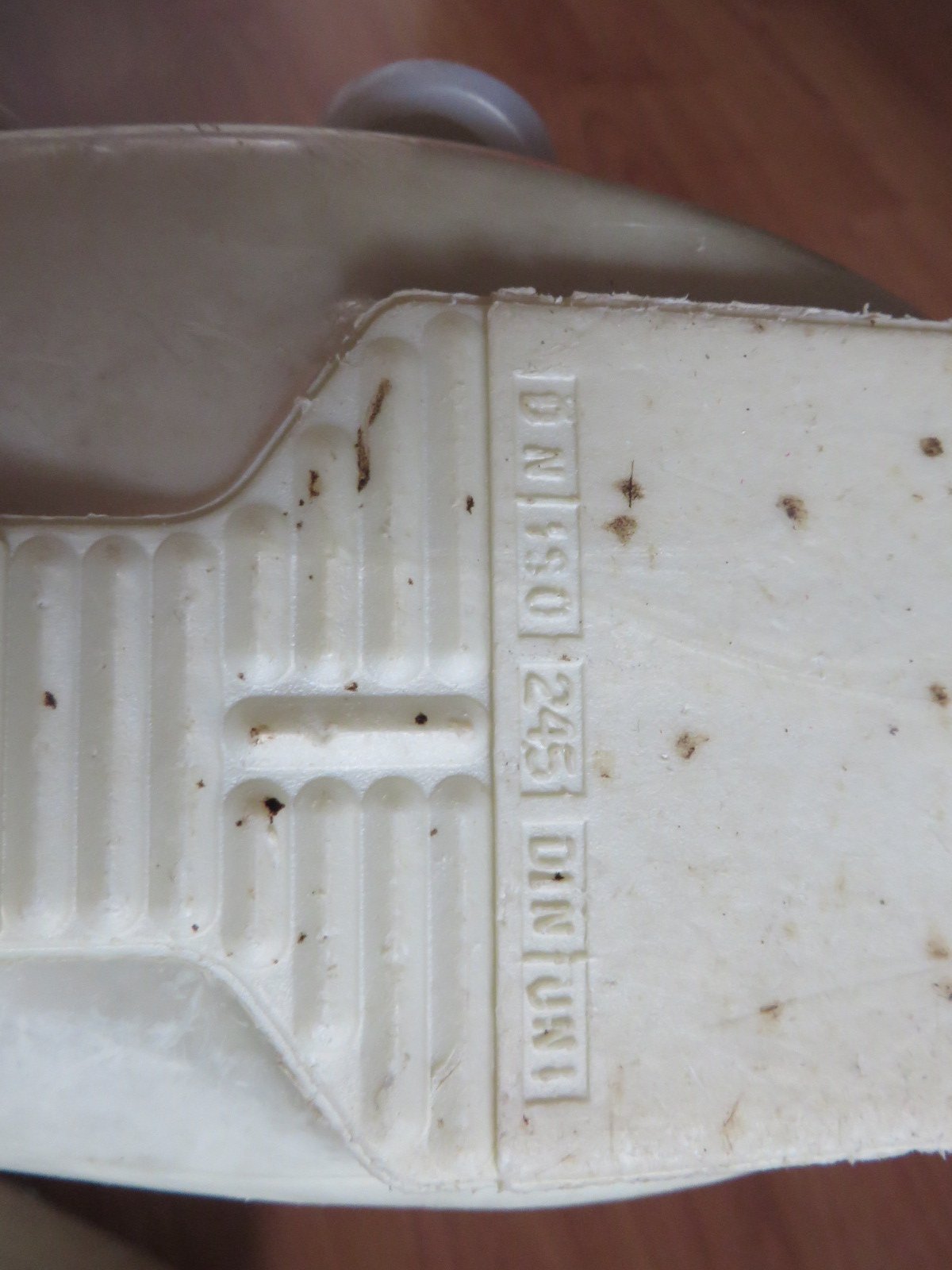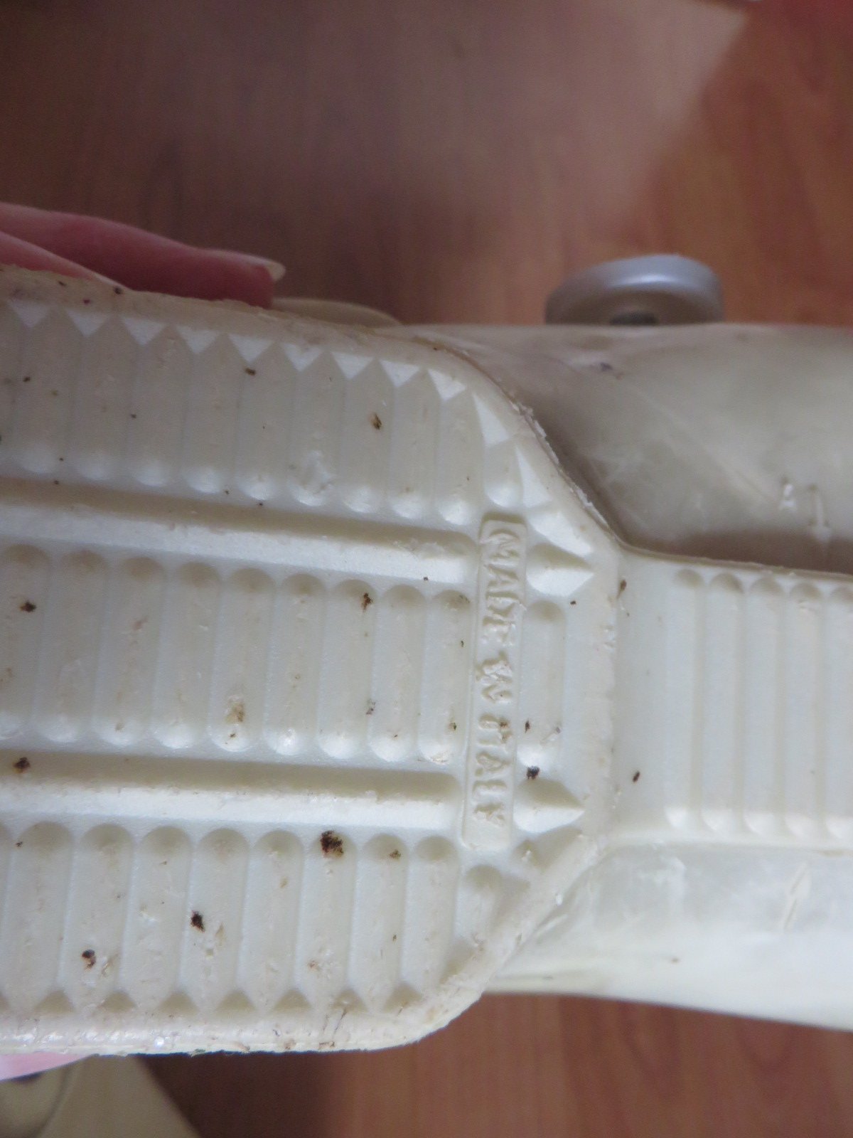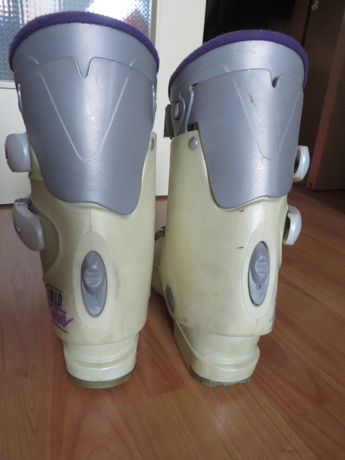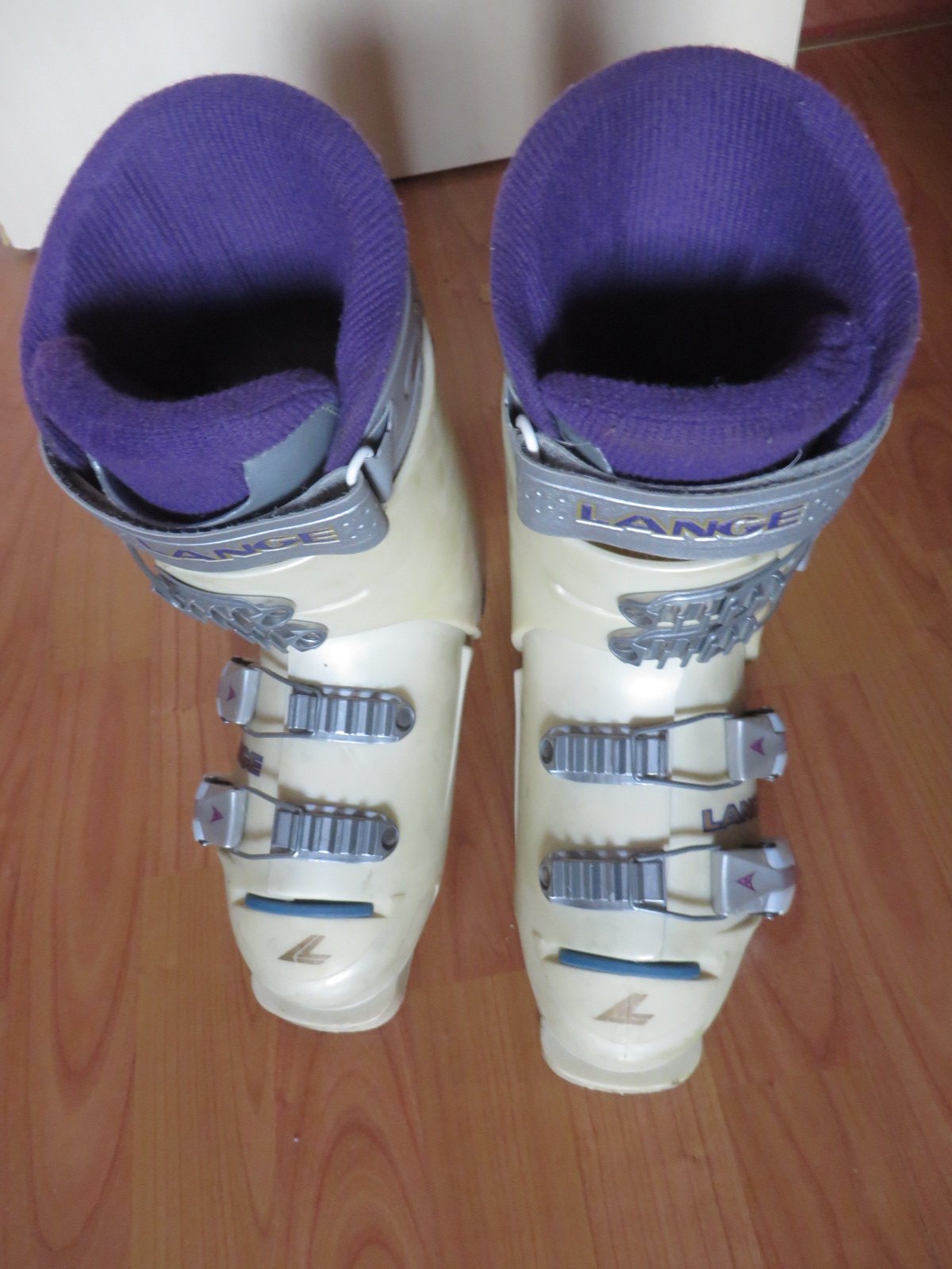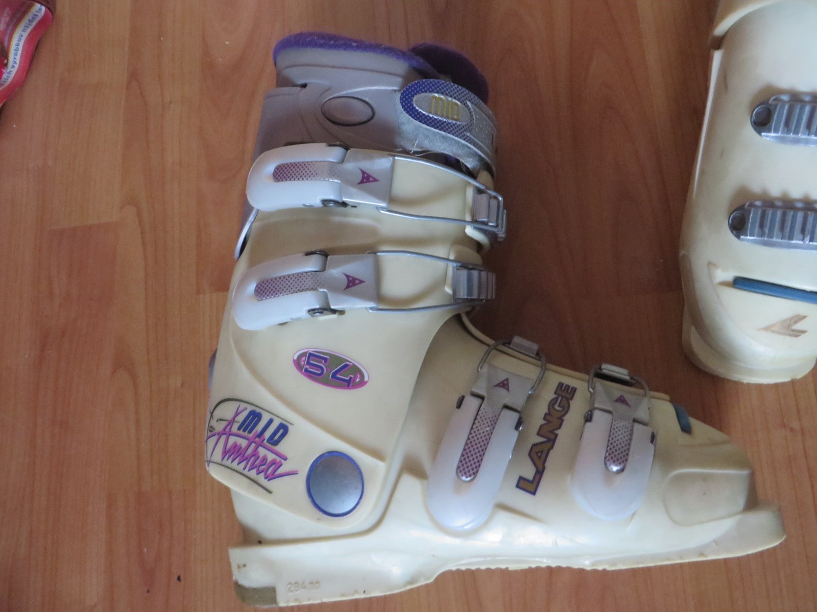 Predám dievčenské biele lyžiarky, značky LANGE. Veľkosť je taká 36-37, vnútorná dĺžka je 24,5 cm, skelet má veľkosť 284mm. Vnútorná papuča je bez poškodení, sú poriadne teplé. Sú nosené, na fotke je vidieť kúsok zlomenej pätky, dajú sa však používať aj takto. My sme to ešte nestihli dať do poriadku, ale už sú malé. Klipsy držia ako majú.