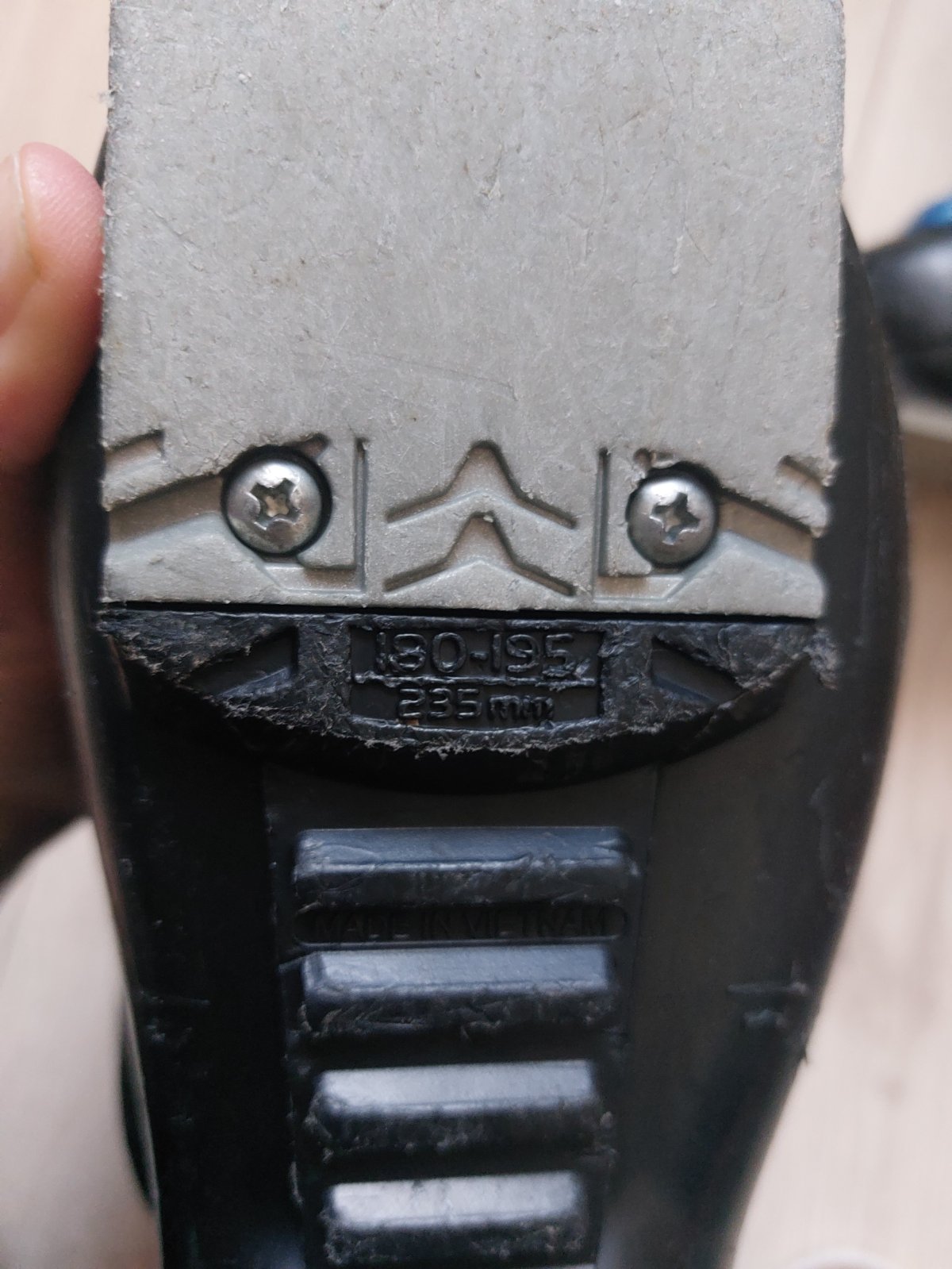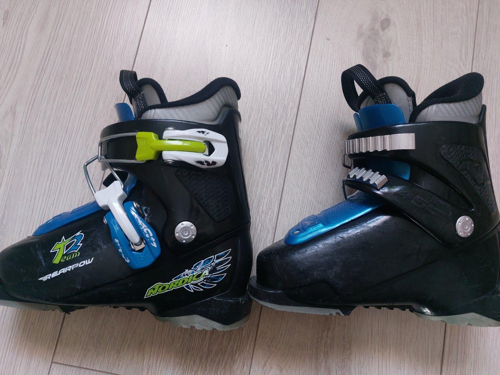malý nosil cca ked mal nohu cca 25,26..Veľkosť lyžiarky je odfotena na foto zo spodnej casti 180-195mm to je vnút.rozmer a vonkajší 235mm.