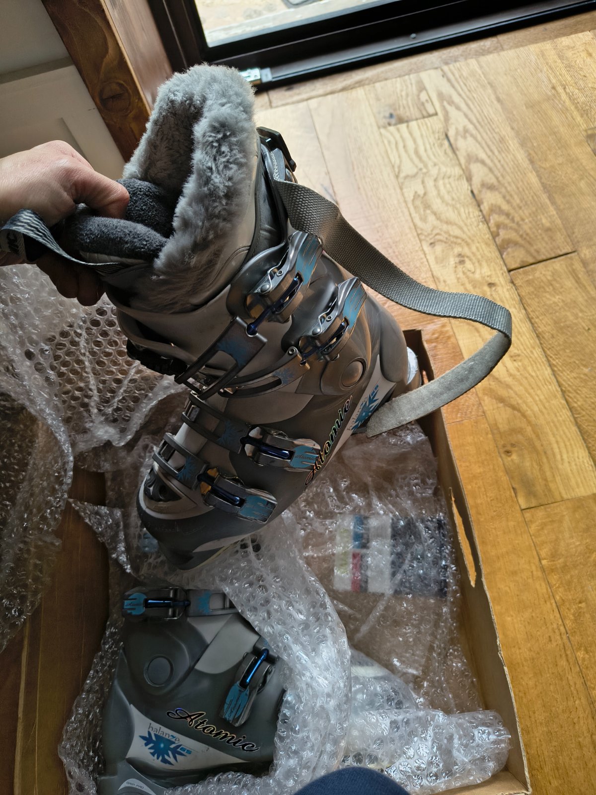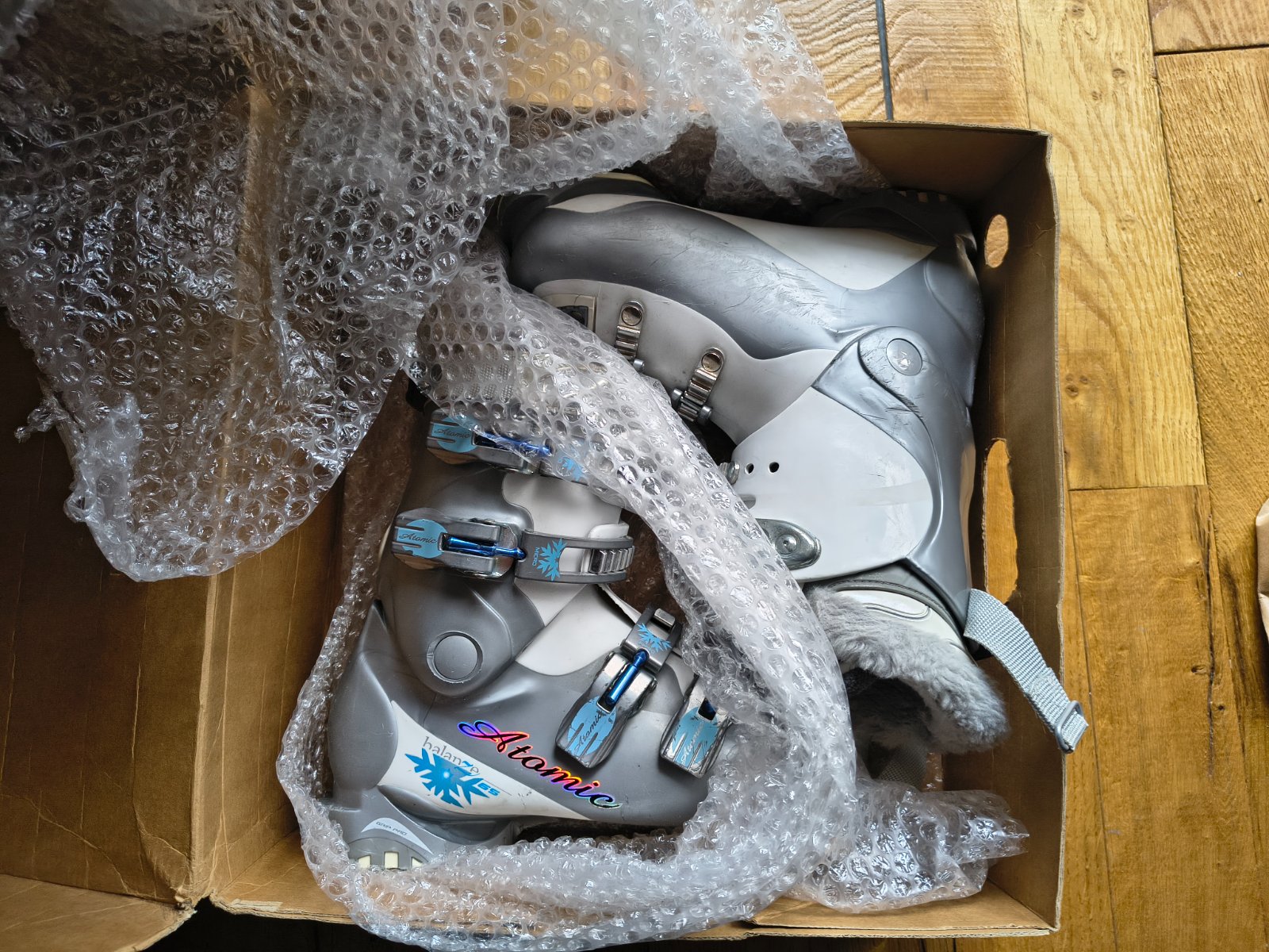 Predám lyziarky atomic obuté dcérkou asi 2 krát, už sú malé. Top stav. Uvedená veľkosť 24 - 24,5 cm. Cena aj s poštou ako balík na poštu 100 EUR.