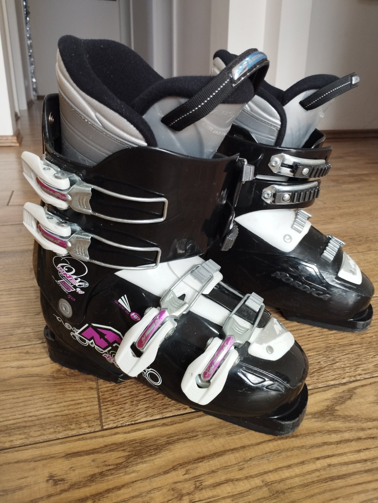 Posuniem lyžiarky Nordica. Veľkosť uvedená na foto, dcéra ich nosila súčasne s obuvou veľkosti 34-35. Bez funkčných vád, iba vonkajšie oderky. Antibakteriálna úprava vložky.