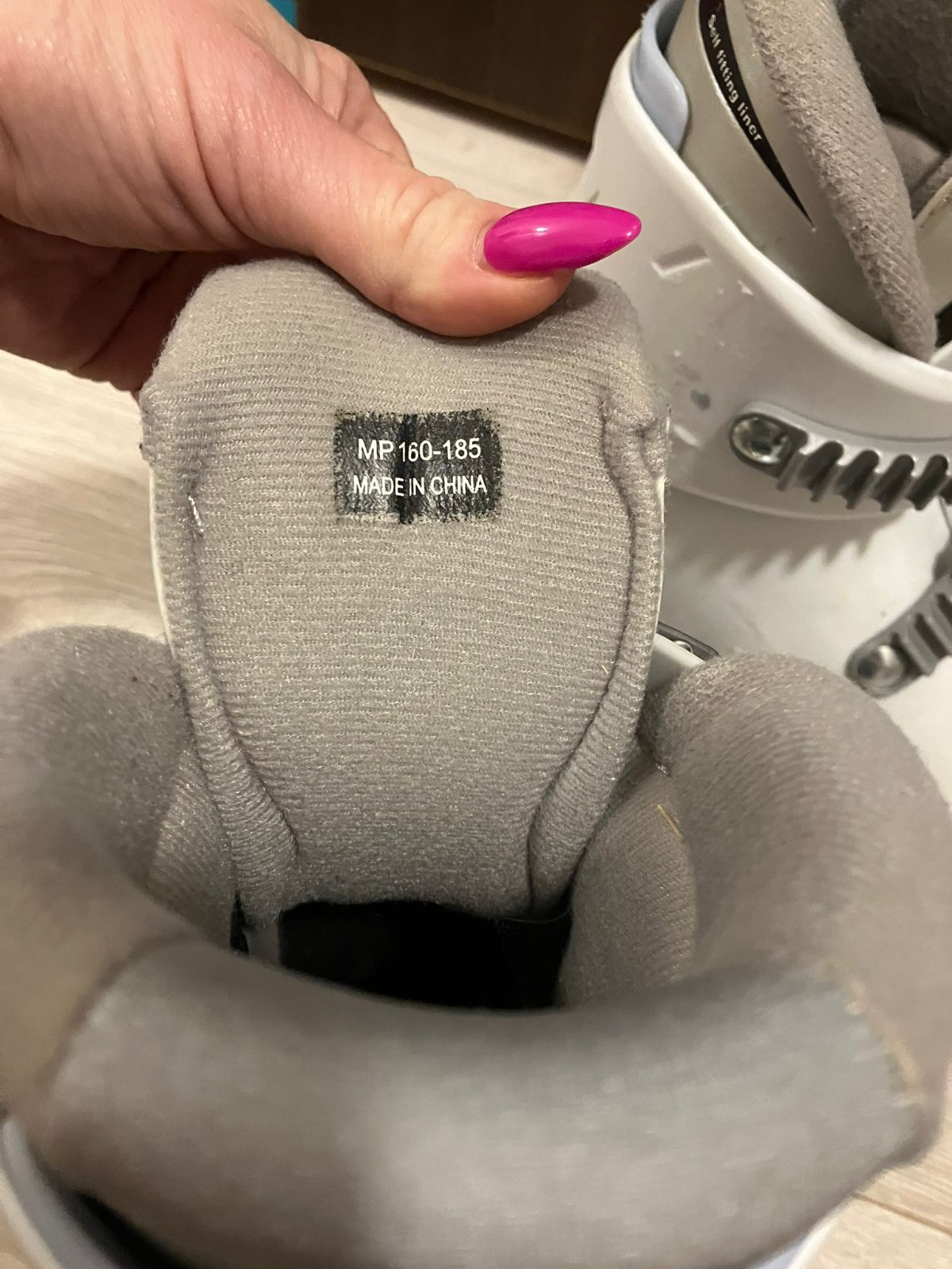 Krásne zateplene lyziarky používané jednu sezónu. Vyberateľná papučky. Veľkosť 160 - 175. Dĺžka skeletu 215 mm.