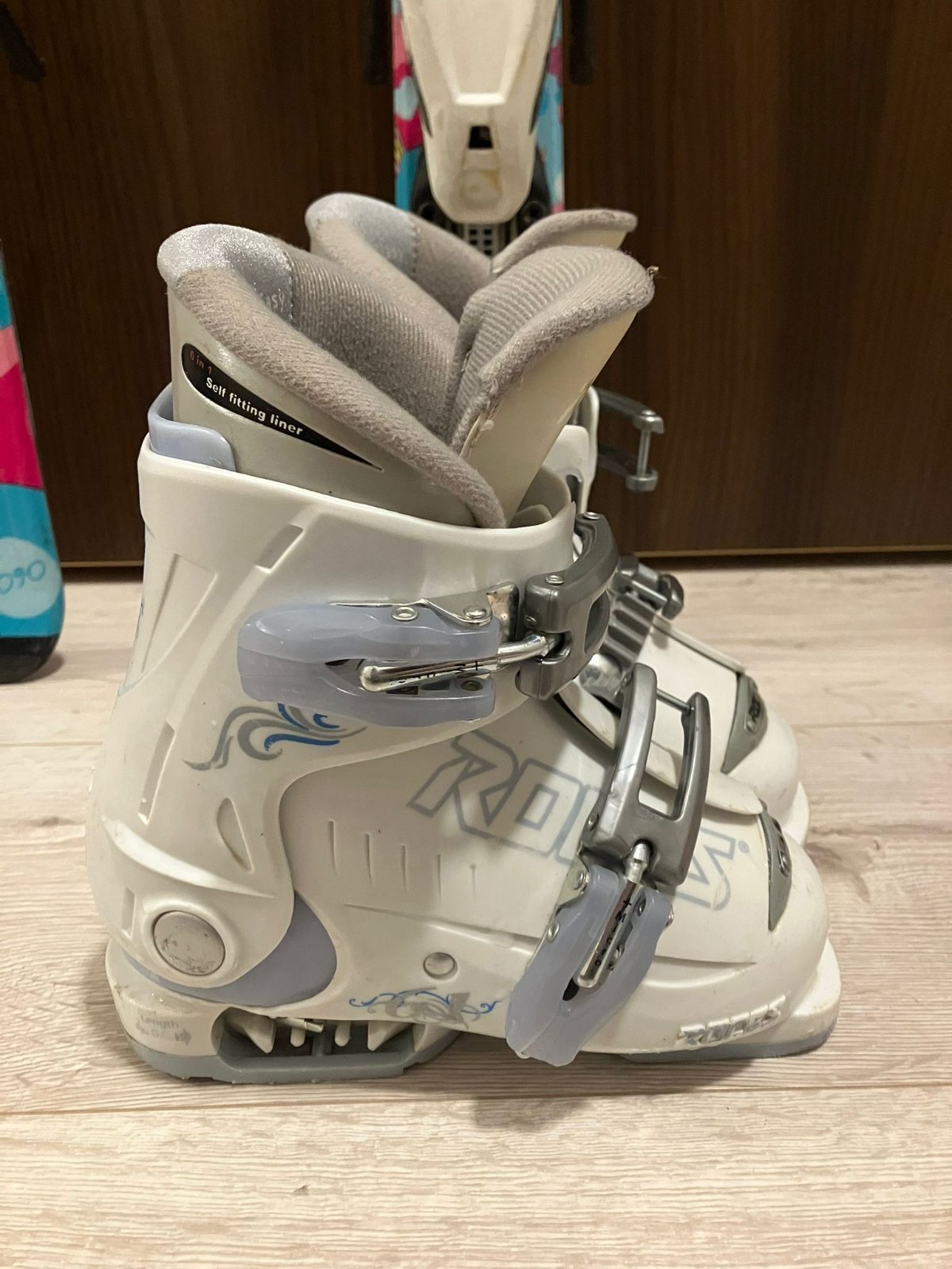 Predám 2 sezóny používané diečenské lyžiarky. Bežné známky použitia, škrabance viď.foto. Veľkosť 26,5 305 mm Lyžiarka Fun Girl J4 je skonštruovaná tak aby čo najpresnejšie sedela na dievčenskú no...