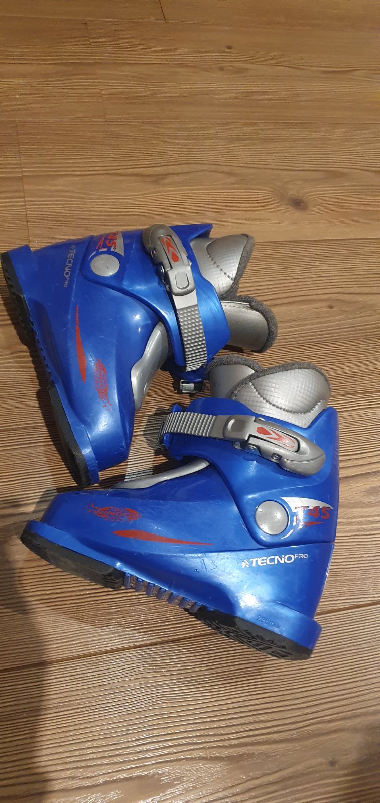 Zachovalé detske lyžiarky, VD 17 cm. vonkajší skelet 228 mm. Značka Tecno PRO.