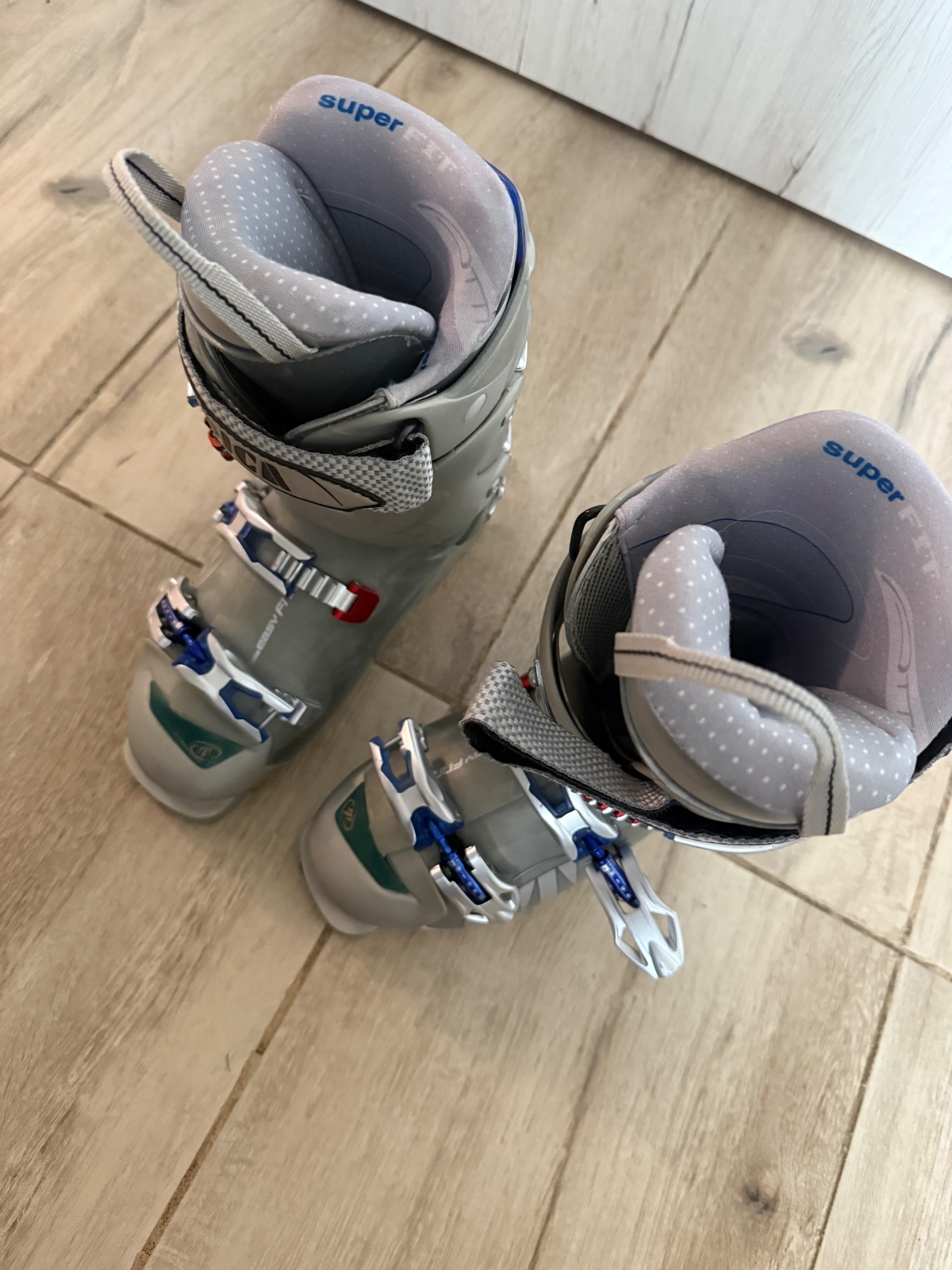 Používané ale plne funkčné. Preferujem osobný odber, pri ktorom sa lyžiarky vyskúšajú. Veľkosť sa mi odhaduje ťažko - nevidieť ju.