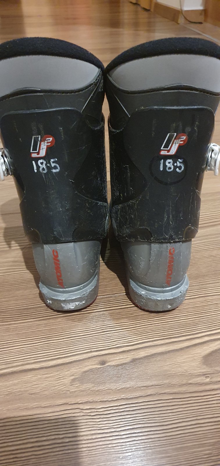 Detské lyžiarky, používané, škrabance, ale sú plne funkčné. VD 18,5 cm, dĺžka vonkajšieho skeletu 221 mm.