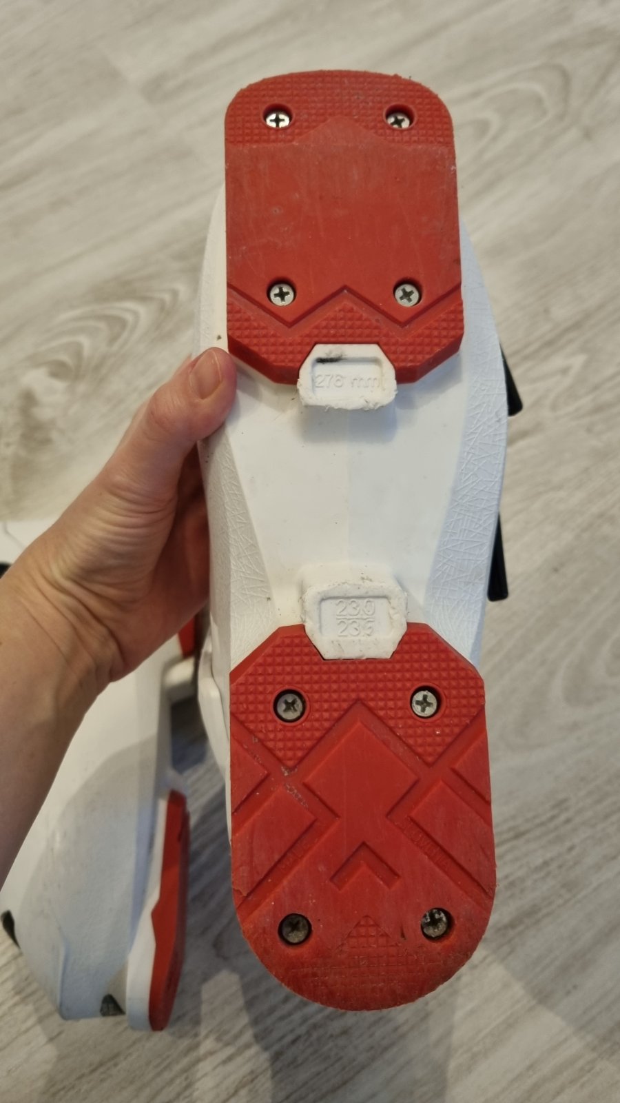 Lyžiarky č. 36, bežne opotrebené jedným dieťaťom dve lyžovačky. Bez poškodenia, funkčné. Mondo 230.