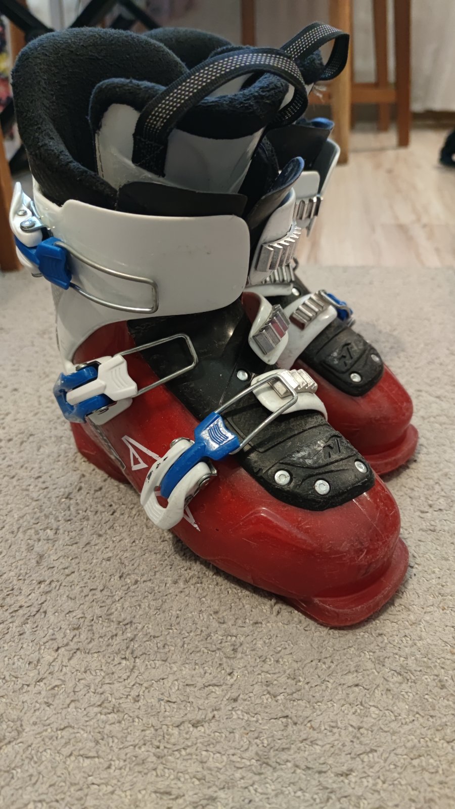 Používané, ale v dobrom stave. Tri klipsne zabezpečujú dobré nastavenie, dcére sa v nich dobre lyžovalo. Vnútorná dĺžka 21,5 cm (22 cm úplne nadoraz), vonkajšia aj s upínaním 27,5 cm. K cene treba prirátať poštovné. Možný aj osobný odber.