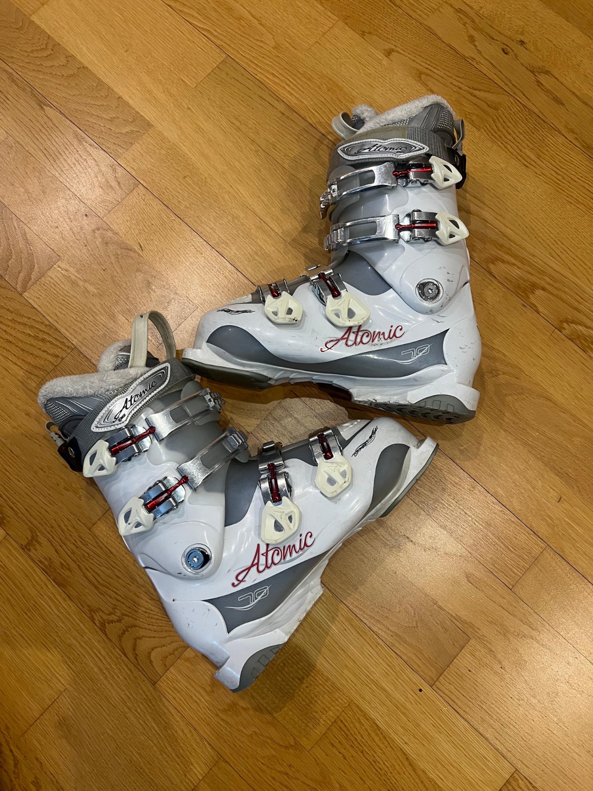 Ponúkam na predaj dámske lyžiarky zn. Atomic vnútorná dĺžka 26cm.