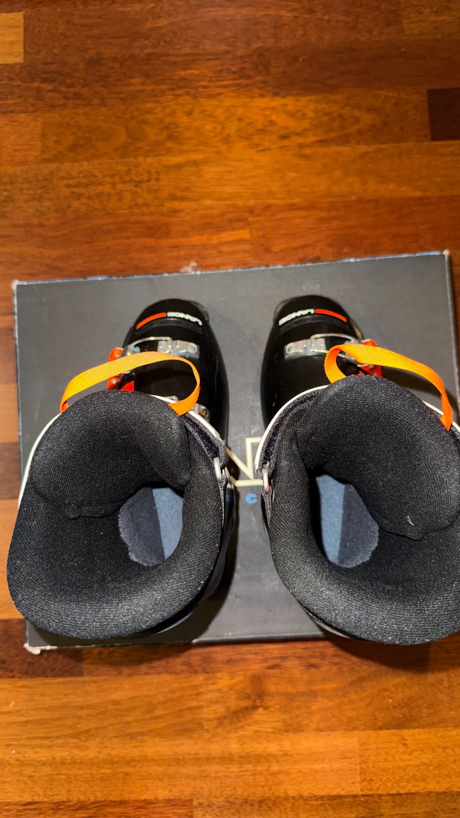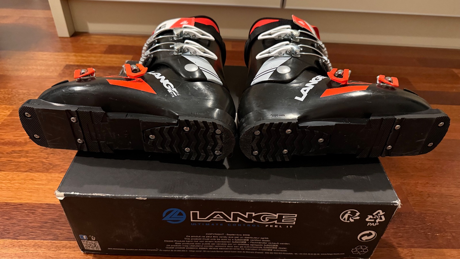 Málo nosené lyžiarky Lange SFT 100. Sú vybavené dvoma klasickými mikroprackami a jednou prackou vybavenú popruhom, ktorý zaistí dokonalejšie utiahnutia v oblasti priehlavku.