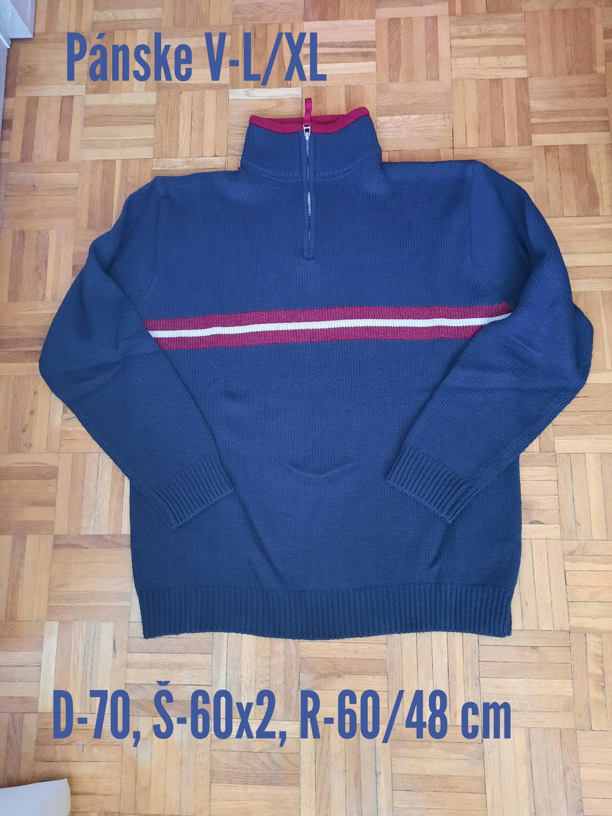 Predám pekný pánsky pulóver so zapínaním na zips pri krku. Je v peknom stave. Rozmery sú na poslednej foto.
