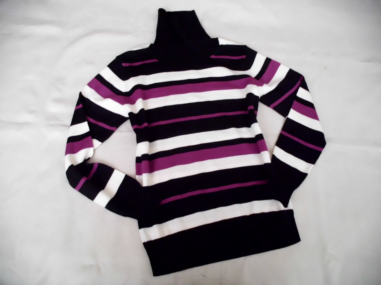 Predám dámsky rolák Fabiani vel. M 38 , šírka 49 cm, dĺžka 66 cm , rukáv od pleca 63cm, veľmi príjemný nie hrubý materiál 50% vlna, farba čierno biele fialové pásiky , raz oblečený nepraný ....