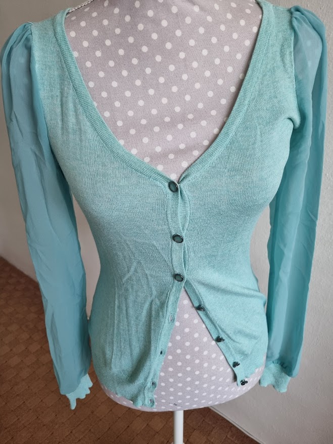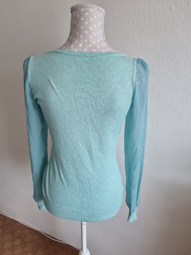 Mentolový svetrík so šifon.rukávmi Orsay s