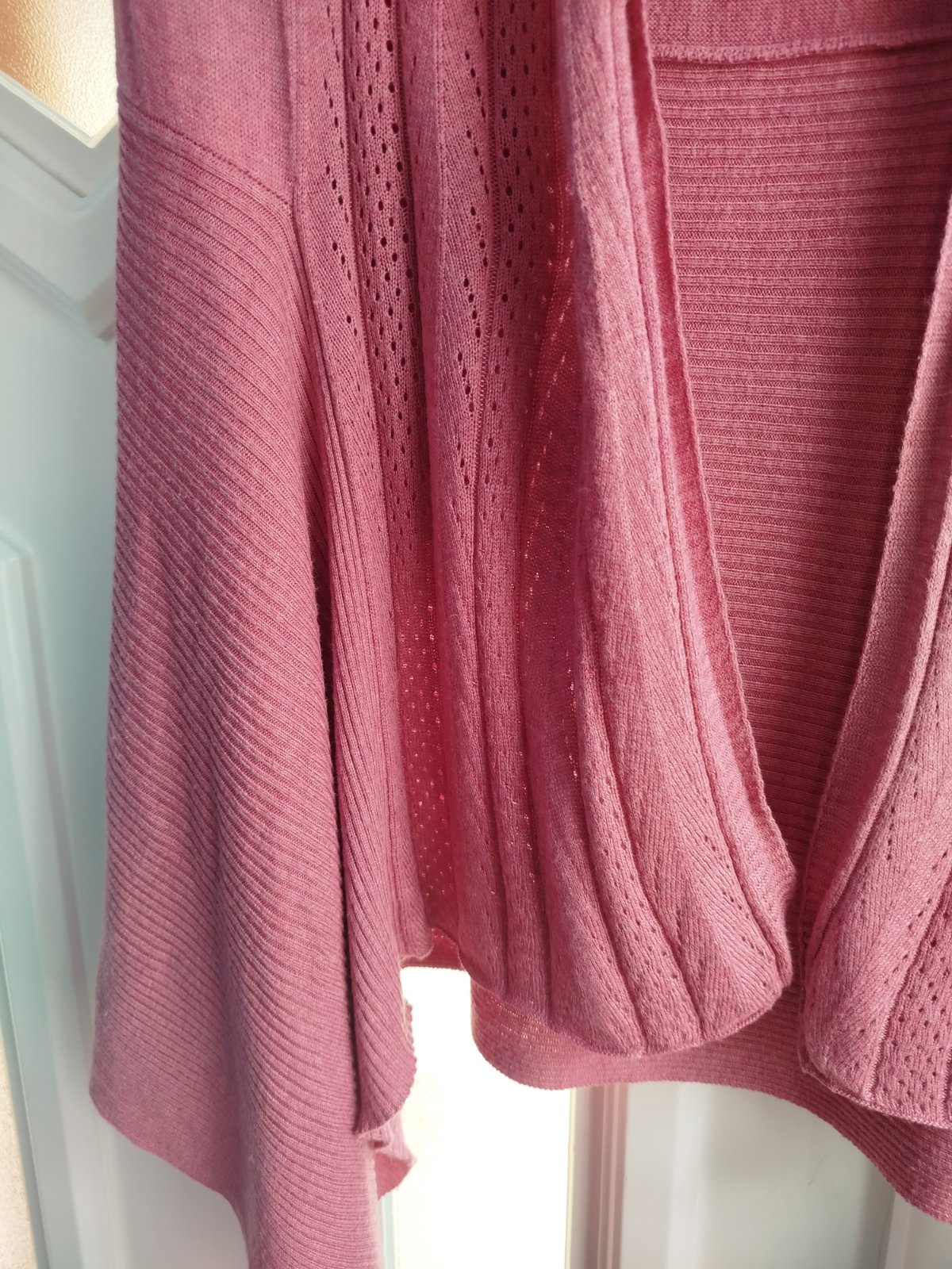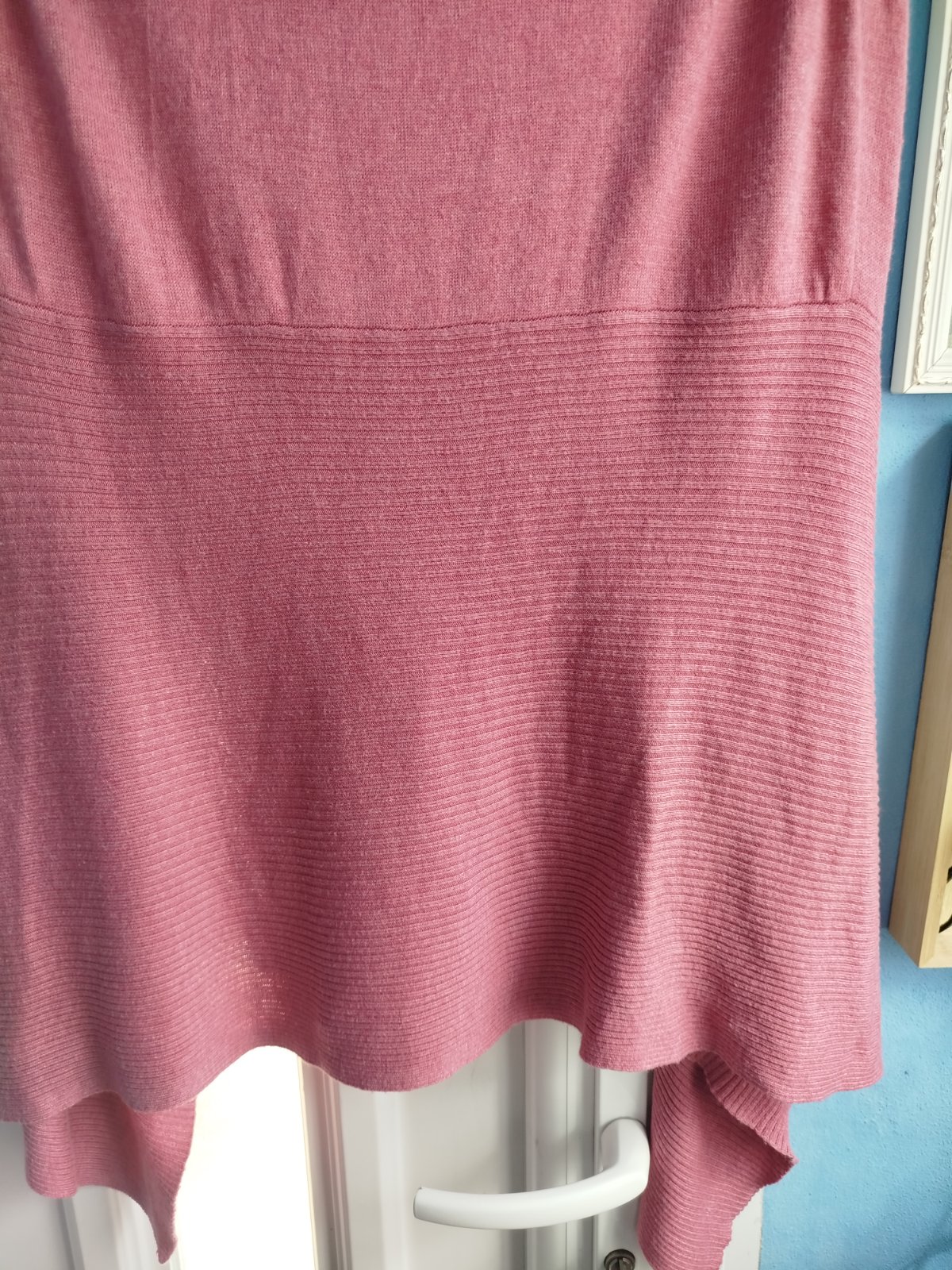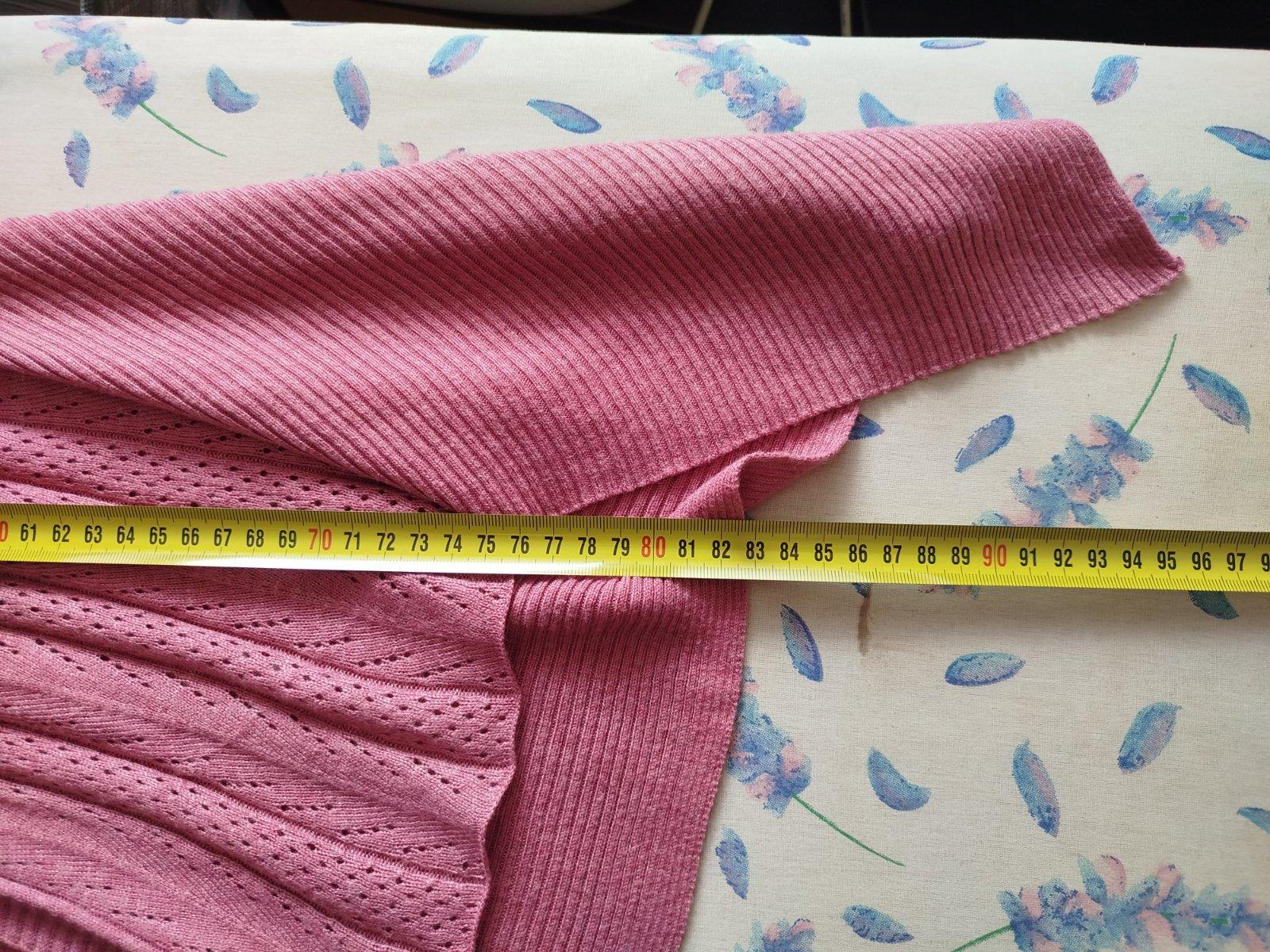 - pekny stav, velkosť udana 38/40, mäkky, príjemný materiál, rozmery pofotene, bez žmolkov a dier len pri fotení som nasla jemny fliačik, odfotene, posledna fotka, ťažko vidno, krasny strih