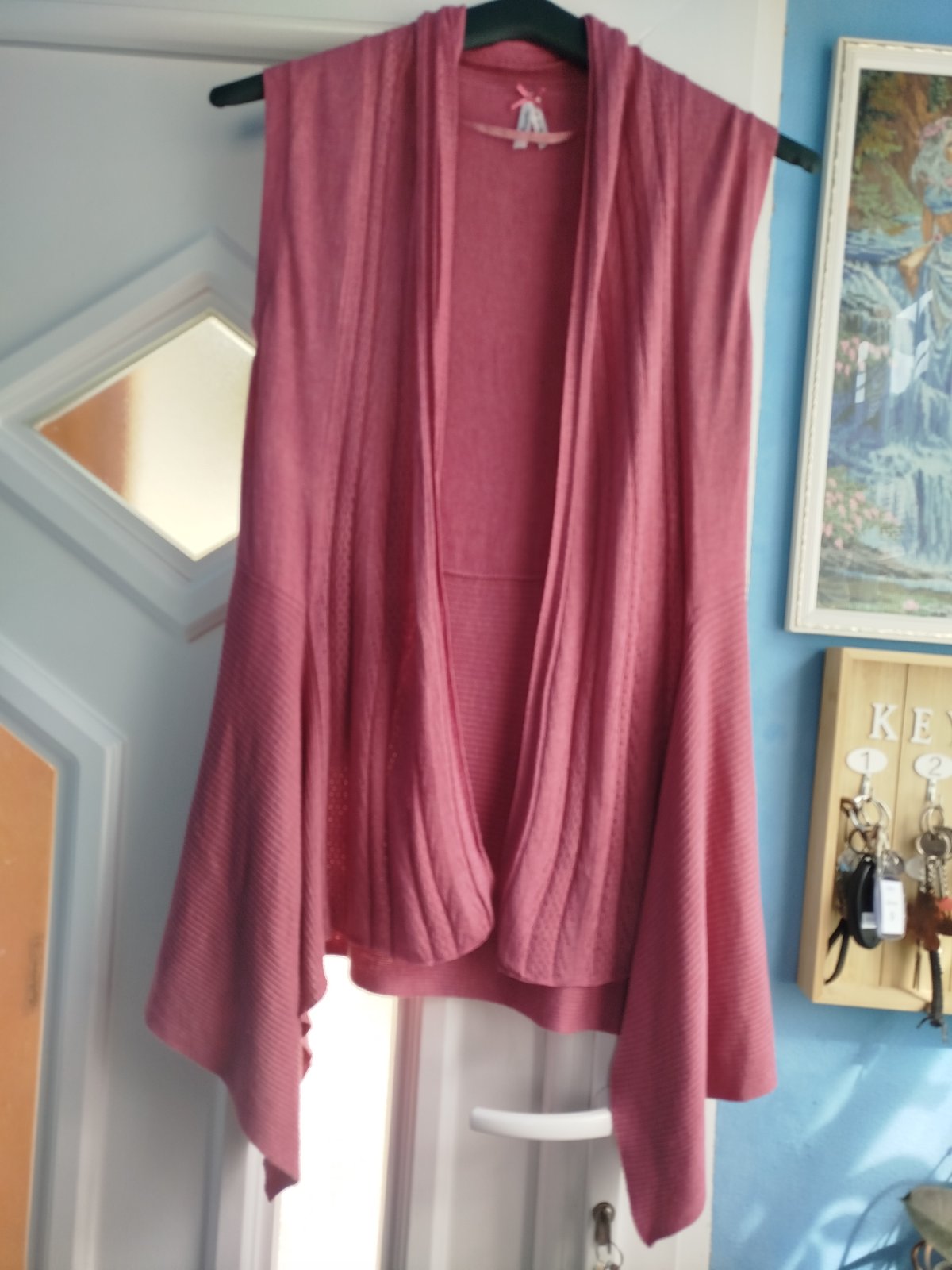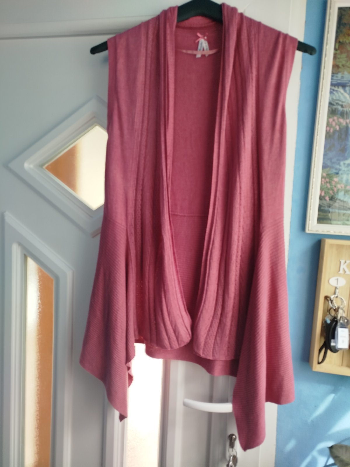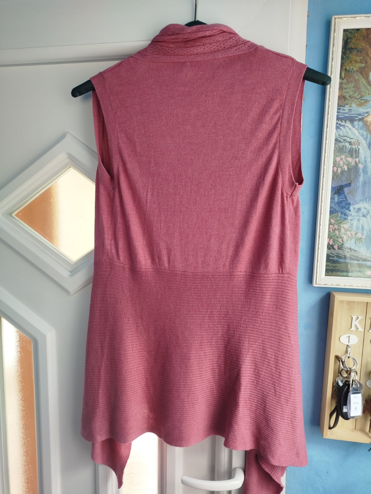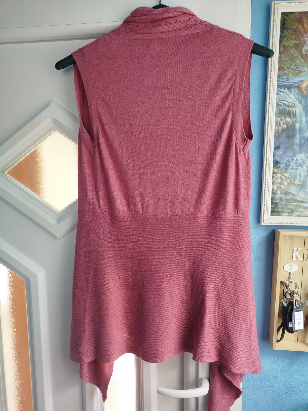 - pekny stav, velkosť udana 38/40, mäkky, príjemný materiál, rozmery pofotene, bez žmolkov a dier len pri fotení som nasla jemny fliačik, odfotene, posledna fotka, ťažko vidno, krasny strih