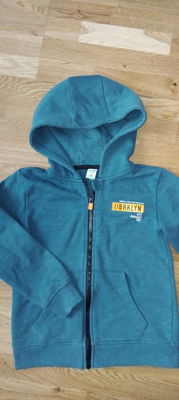 Predám mikinu pre chlapca, veľkosť 122. Nemá poškodenie, ako nová. Značka dopodopo.tyrkysova farba. 2x vrecko s kapucňou. Veľkosť zodpovedá 122.
