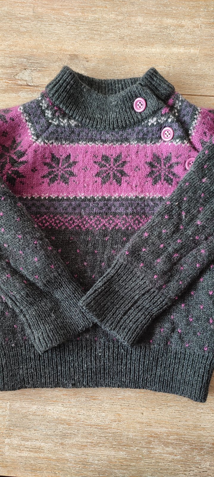 Noseny, bez poskodenia. Stitok s velkostou odstrihnuty. Prikladam miery. Sedi na 3-4 roky. Zlozenie vlna- akryl. Uzasny hrejiny, nehryzie.