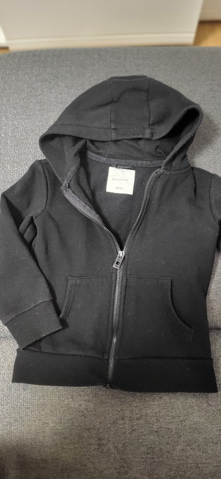 mikinka modrá predaná mikinka čierna reserved 110, 1krát oblečená, 7e/ks